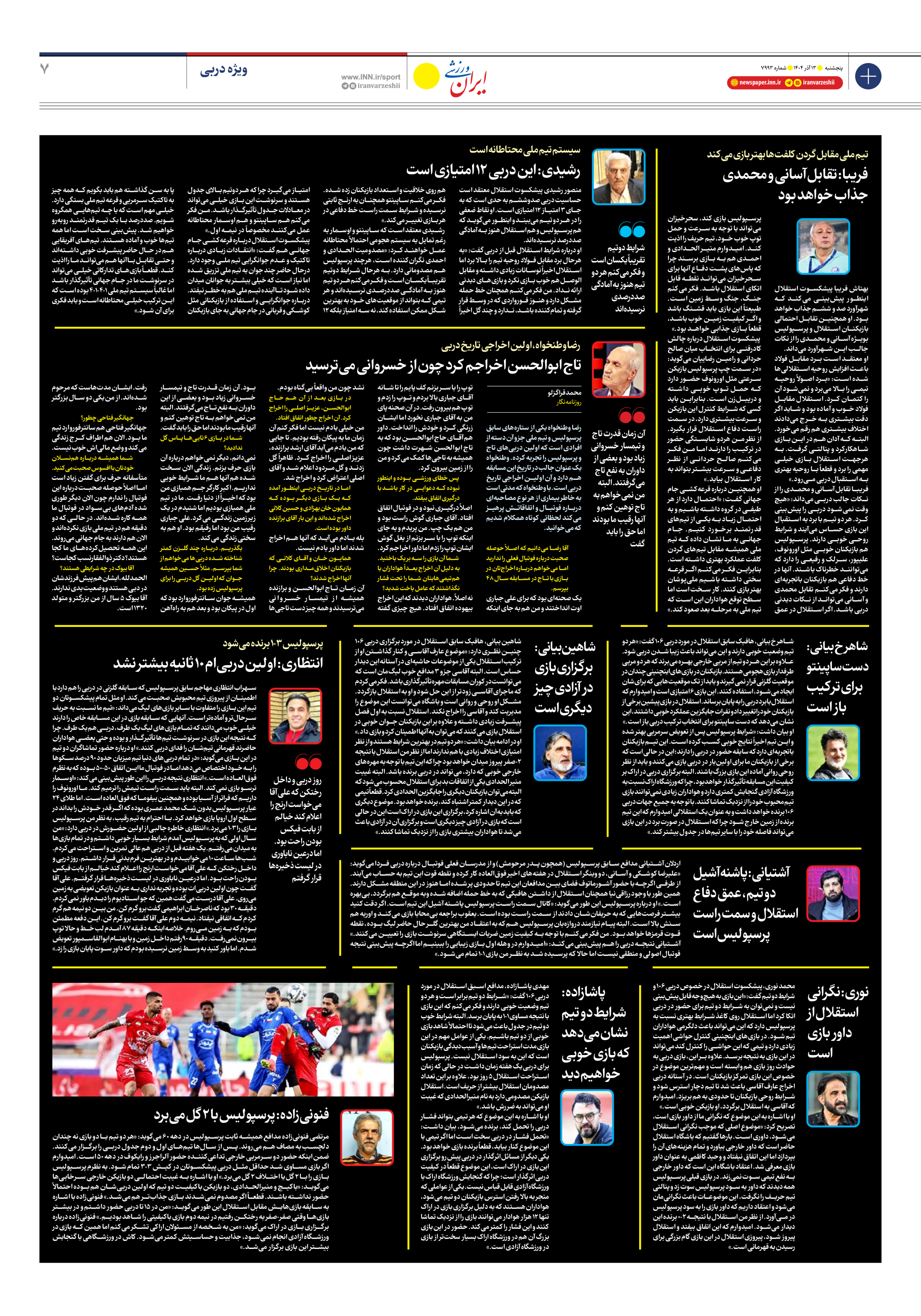 شماره هفت هزار و نهصد و نود و سه - ۱۳ آذر ۱۴۰۴