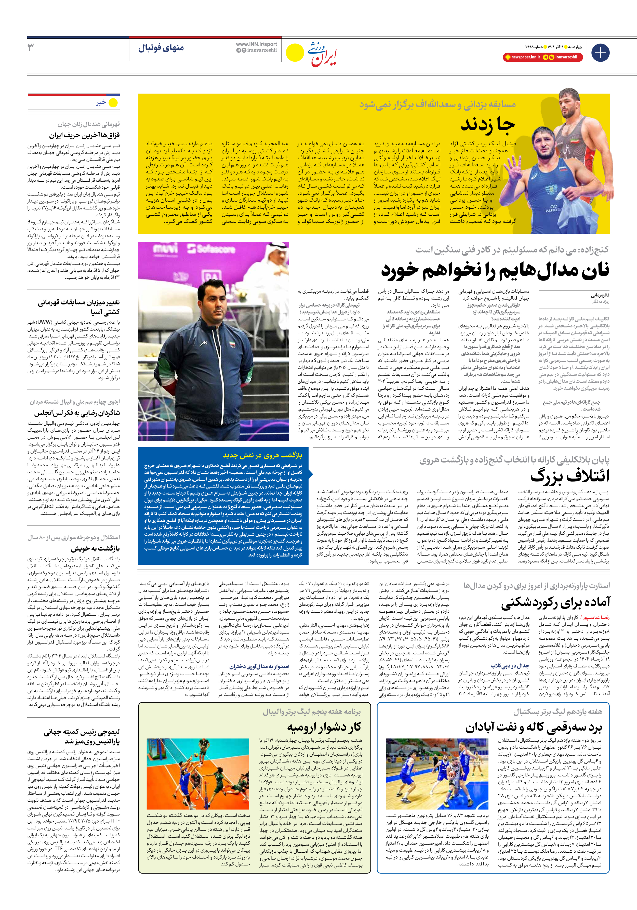 روزنامه ایران ورزشی - شماره هفت هزار و نهصد و نود و هشت - ۱۹ آذر ۱۴۰۴ - صفحه ۳