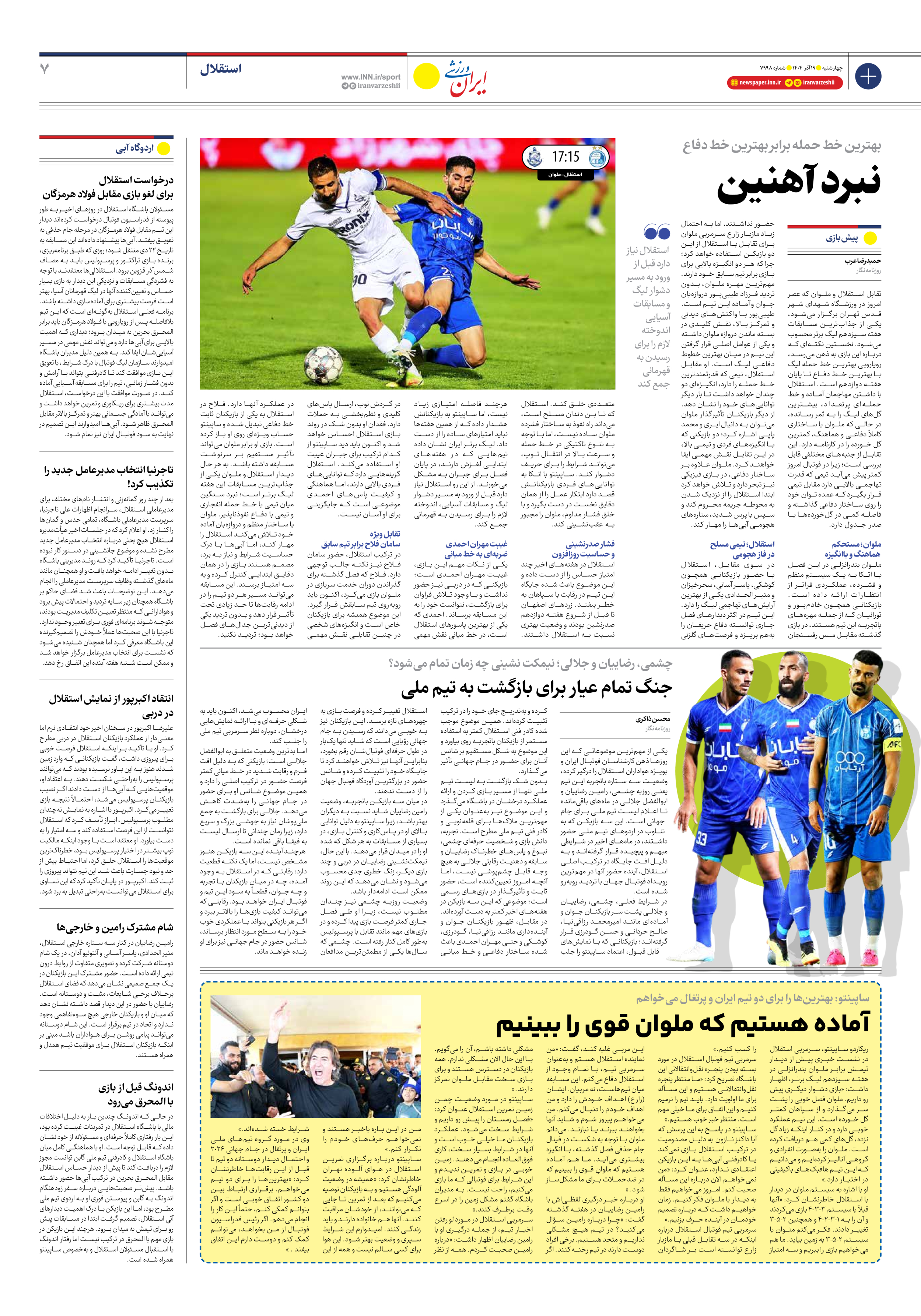 روزنامه ایران ورزشی - شماره هفت هزار و نهصد و نود و هشت - ۱۹ آذر ۱۴۰۴ - صفحه ۷