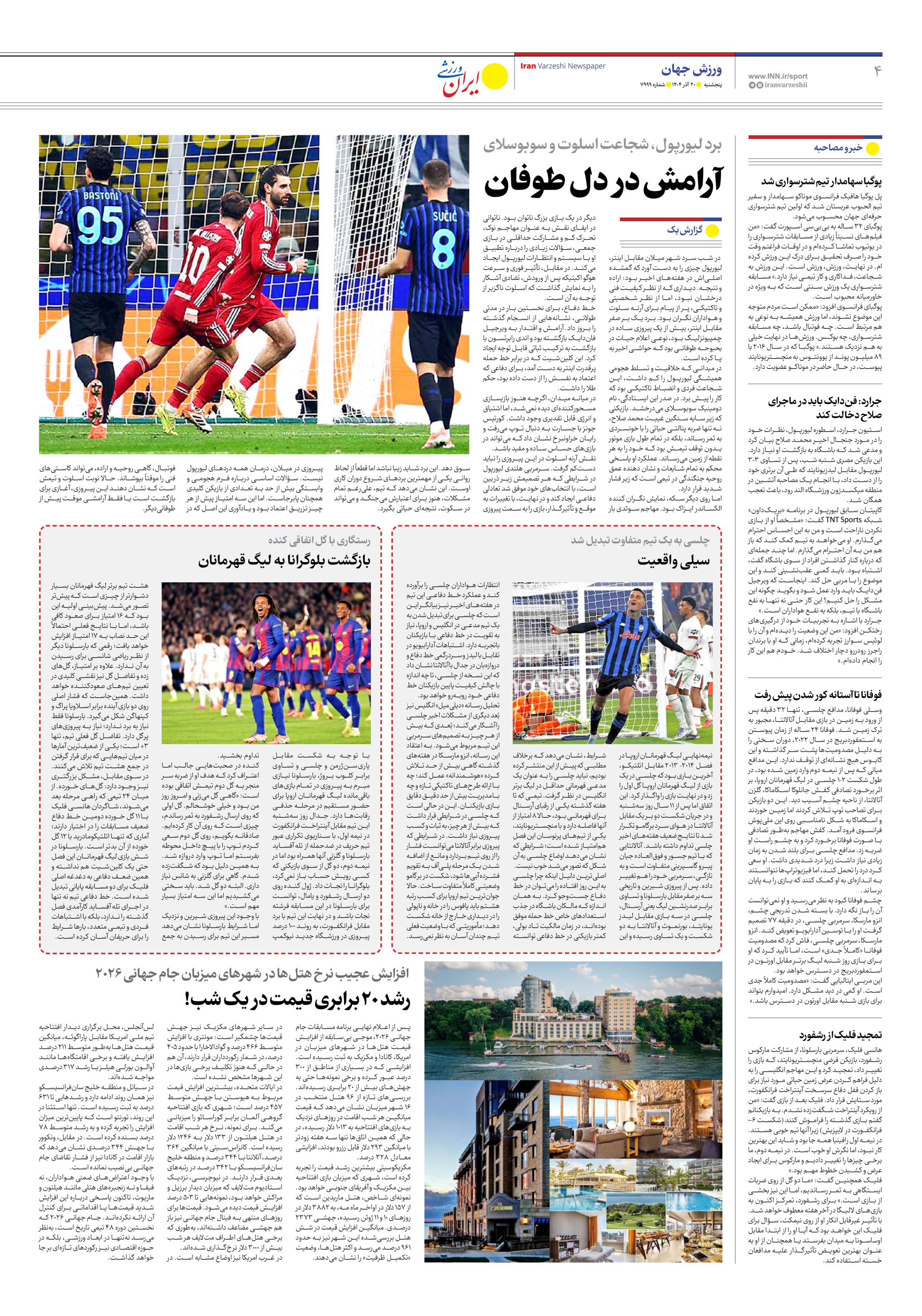 روزنامه ایران ورزشی - شماره هفت هزار و نهصد و نود و نه - ۲۰ آذر ۱۴۰۴ - صفحه ۴