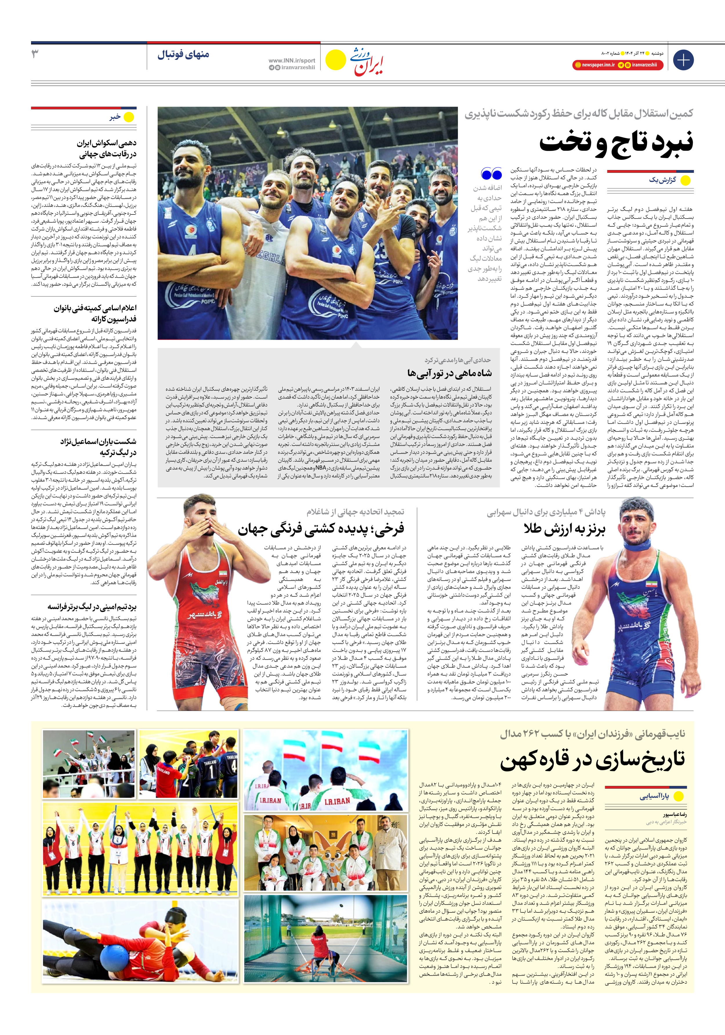 روزنامه ایران ورزشی - شماره هشت هزار و دو - ۲۴ آذر ۱۴۰۴ - صفحه ۳
