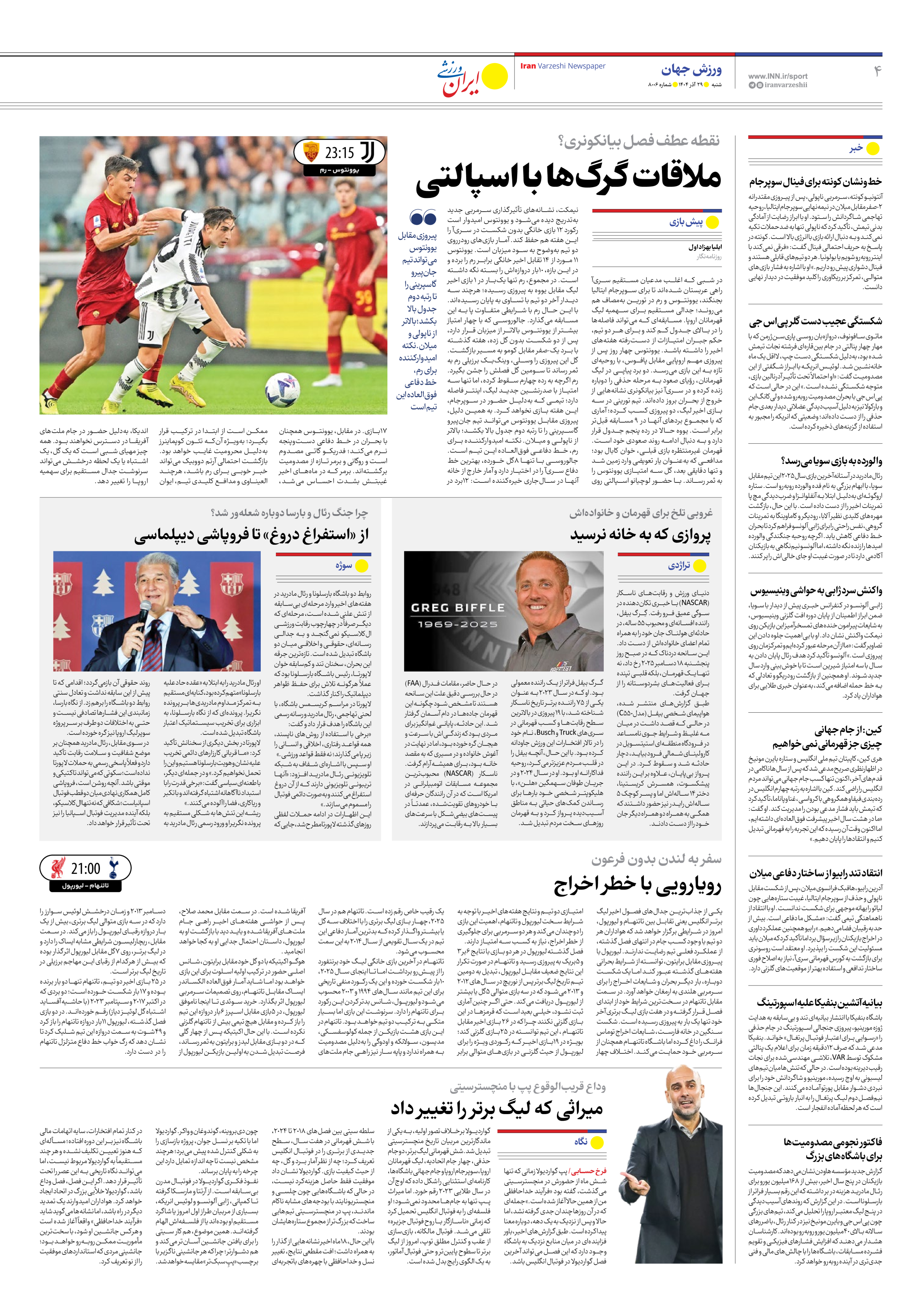 روزنامه ایران ورزشی - شماره هشت هزار و شش - ۲۹ آذر ۱۴۰۴ - صفحه ۴