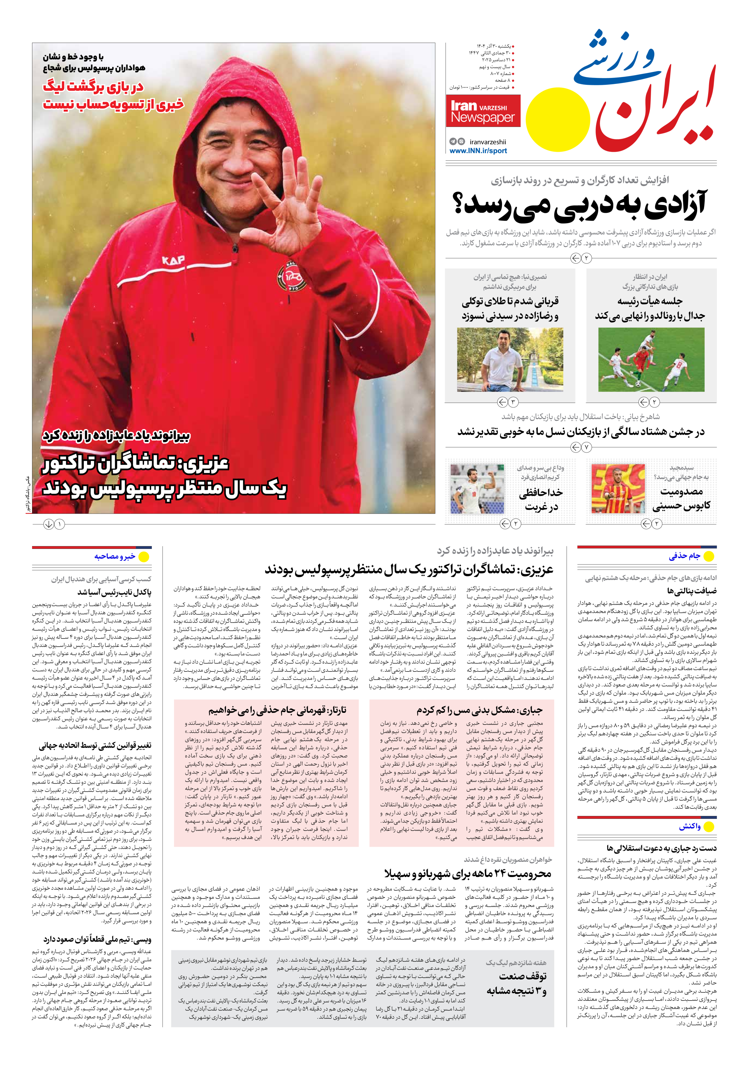 روزنامه ایران ورزشی - شماره هشت هزار و هفت - ۳۰ آذر ۱۴۰۴