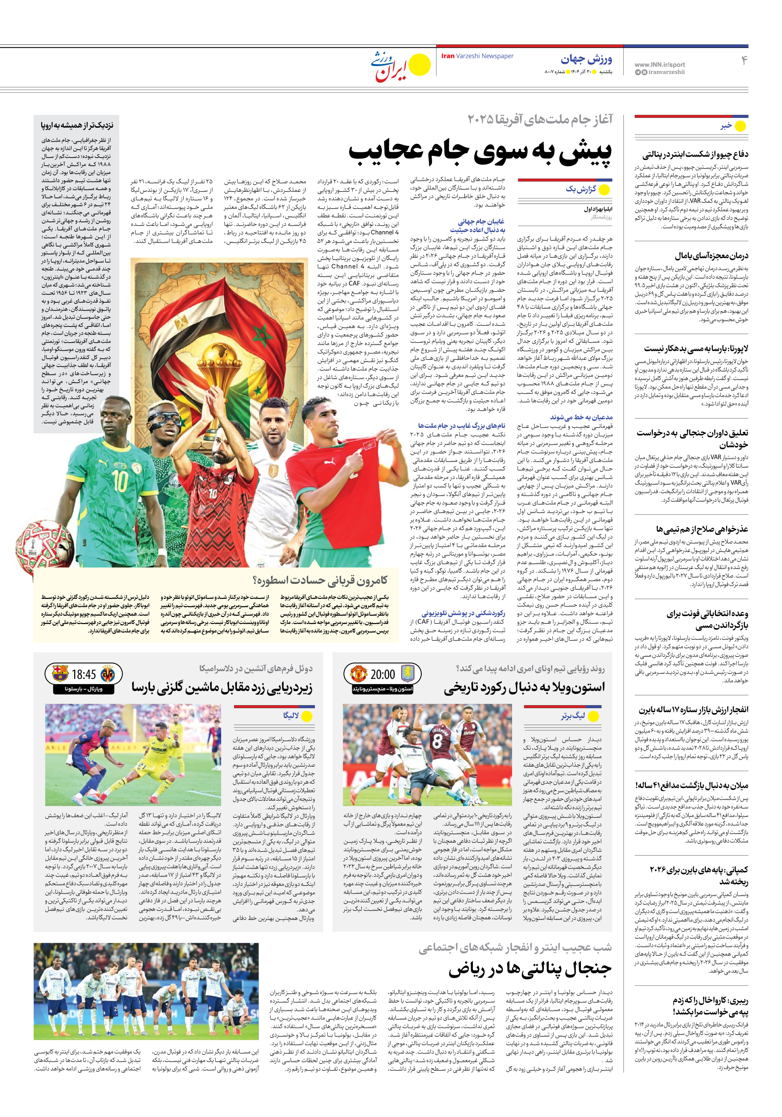 روزنامه ایران ورزشی - شماره هشت هزار و هفت - ۳۰ آذر ۱۴۰۴ - صفحه ۴