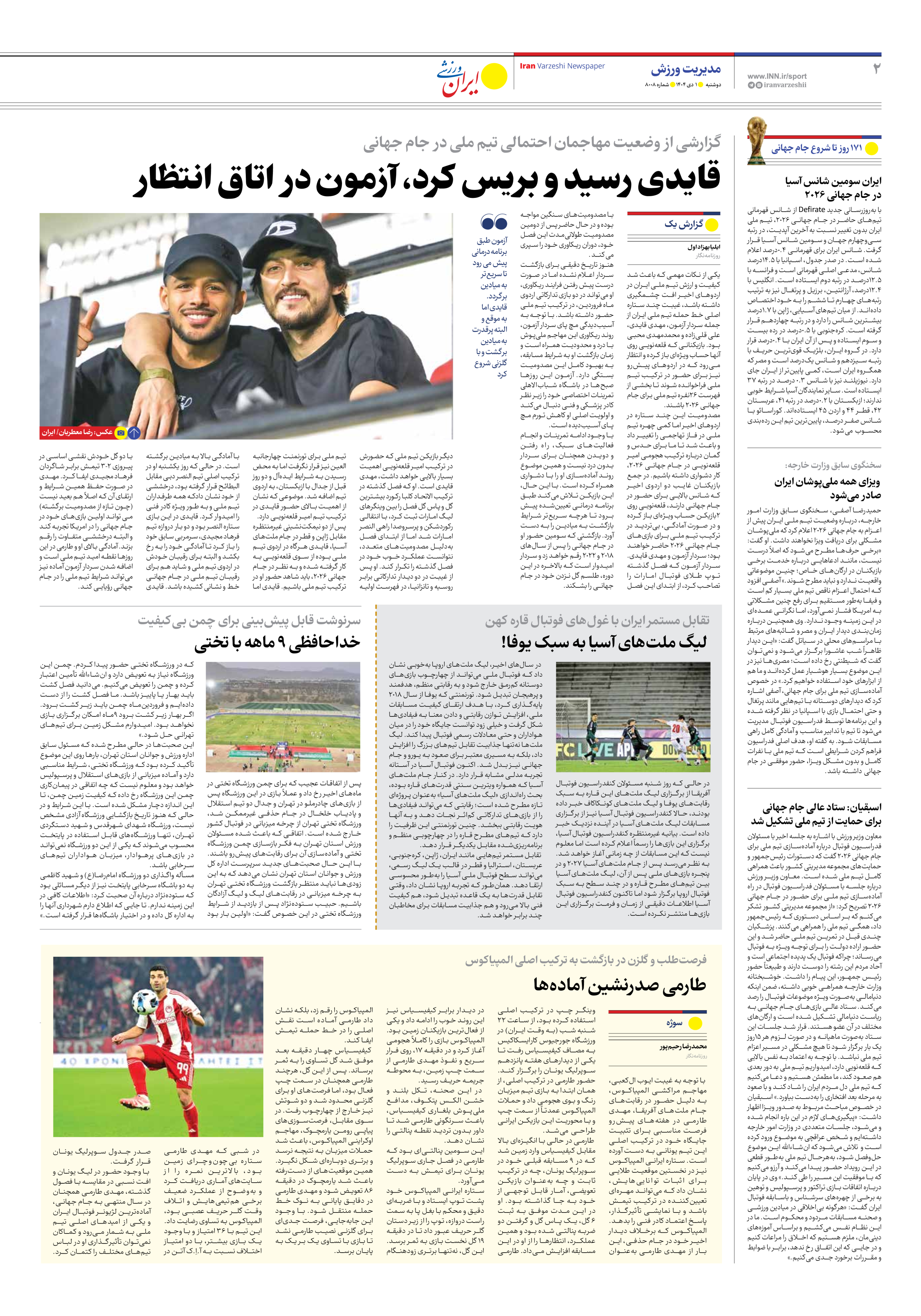 روزنامه ایران ورزشی - شماره هشت هزار و هشت - ۰۱ دی ۱۴۰۴ - صفحه ۲