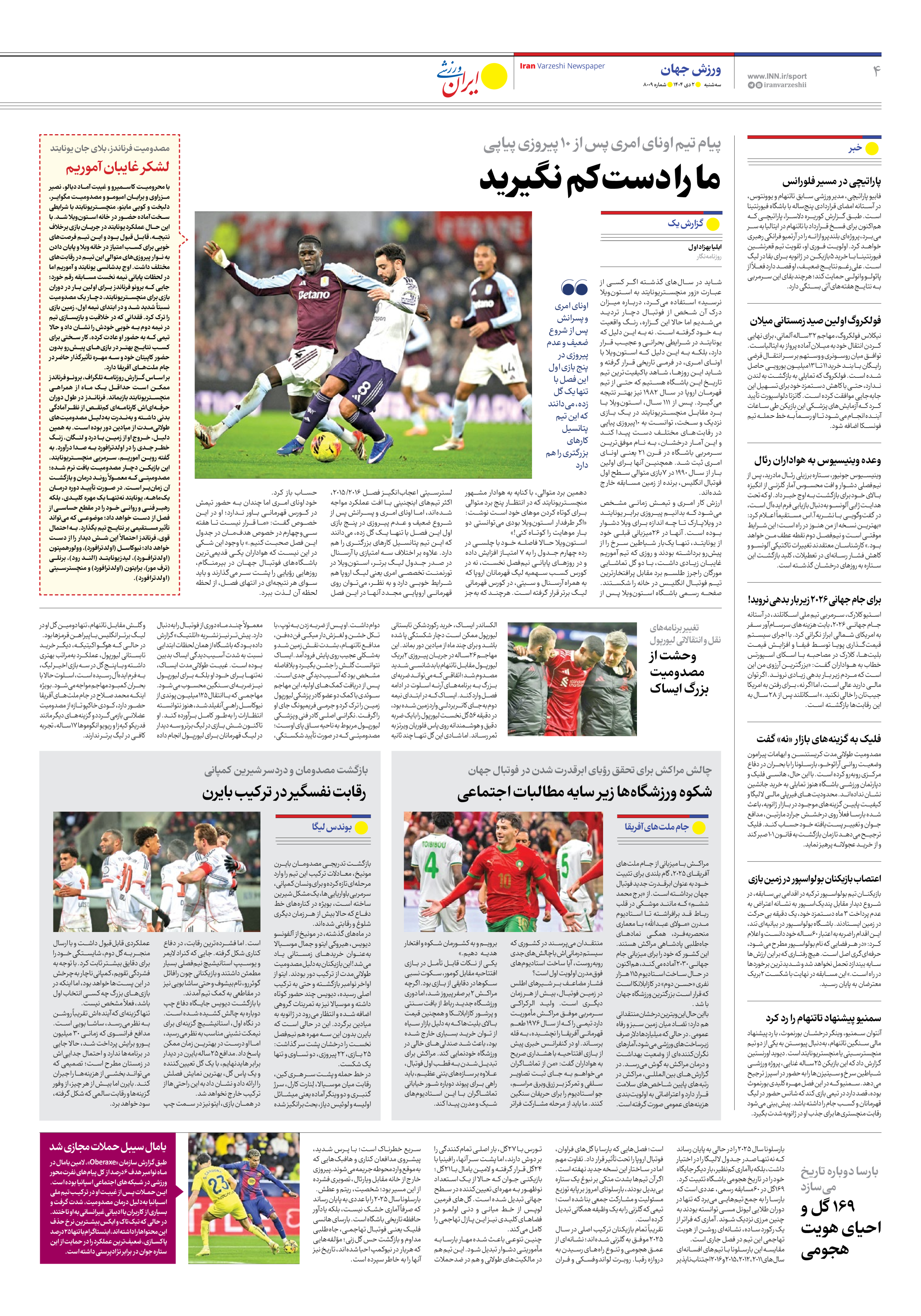 روزنامه ایران ورزشی - شماره هشت هزار و نه - ۰۲ دی ۱۴۰۴ - صفحه ۴