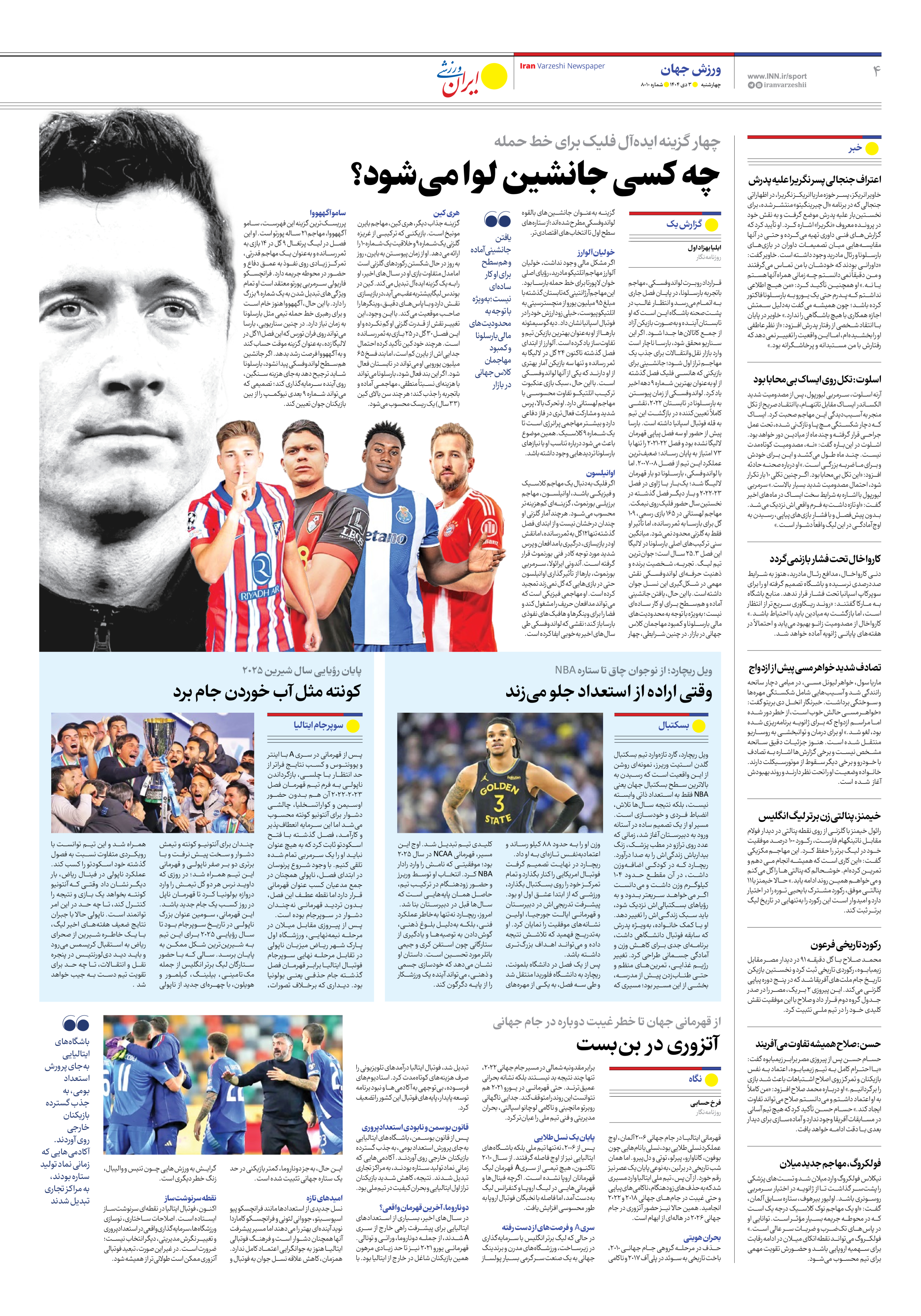 روزنامه ایران ورزشی - شماره هشت هزار و ده - ۰۳ دی ۱۴۰۴ - صفحه ۴