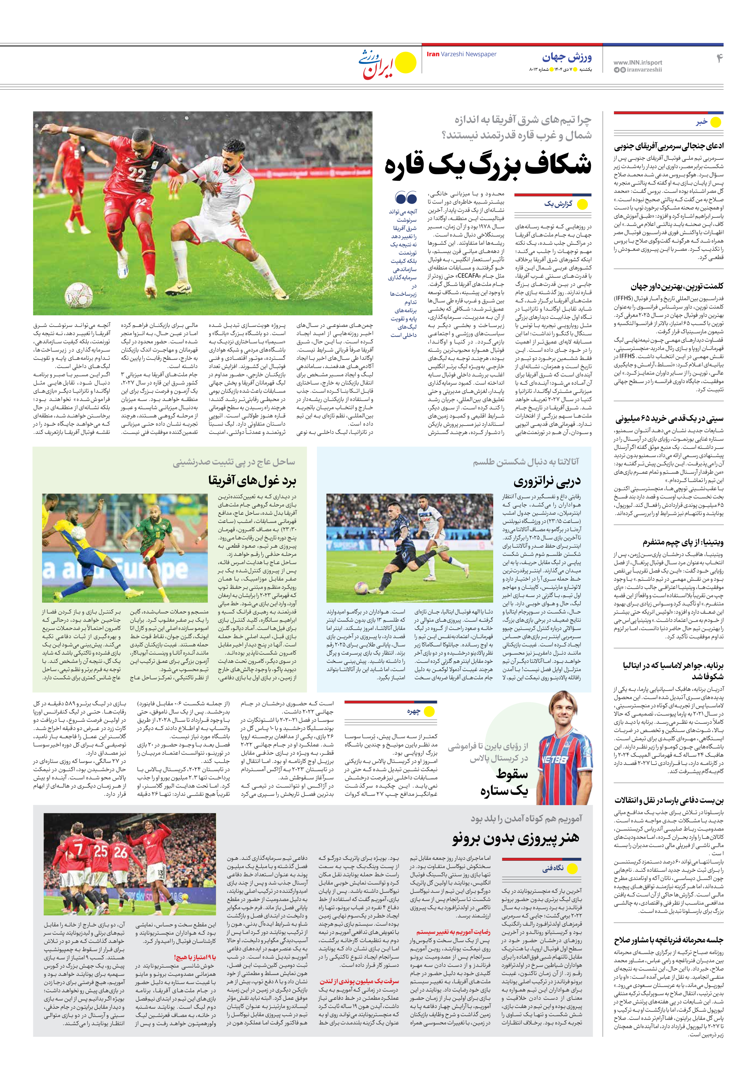 روزنامه ایران ورزشی - شماره هشت هزار و سیزده - ۰۷ دی ۱۴۰۴ - صفحه ۴