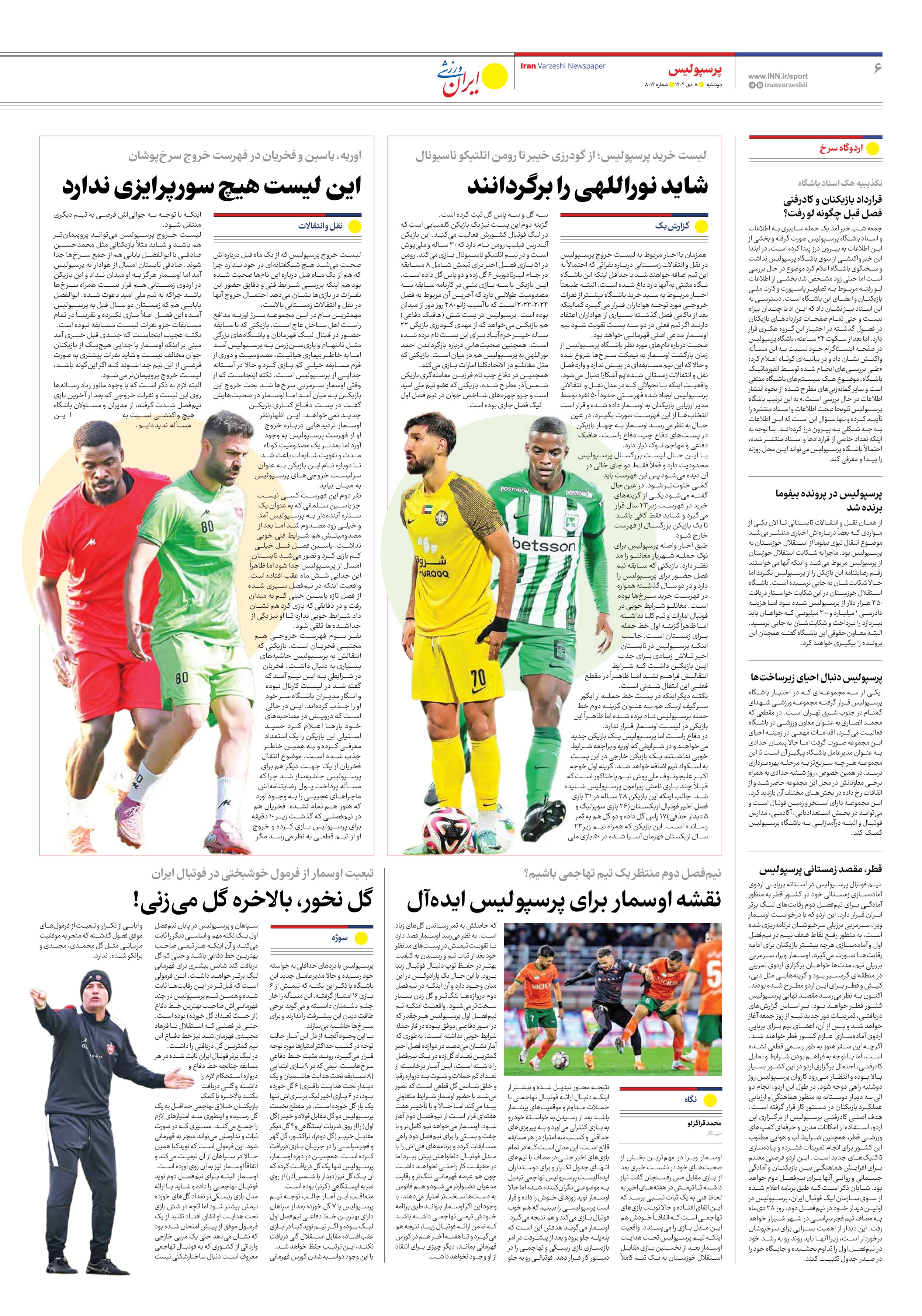 روزنامه ایران ورزشی - شماره هشت هزار و چهارده - ۰۸ دی ۱۴۰۴ - صفحه ۶