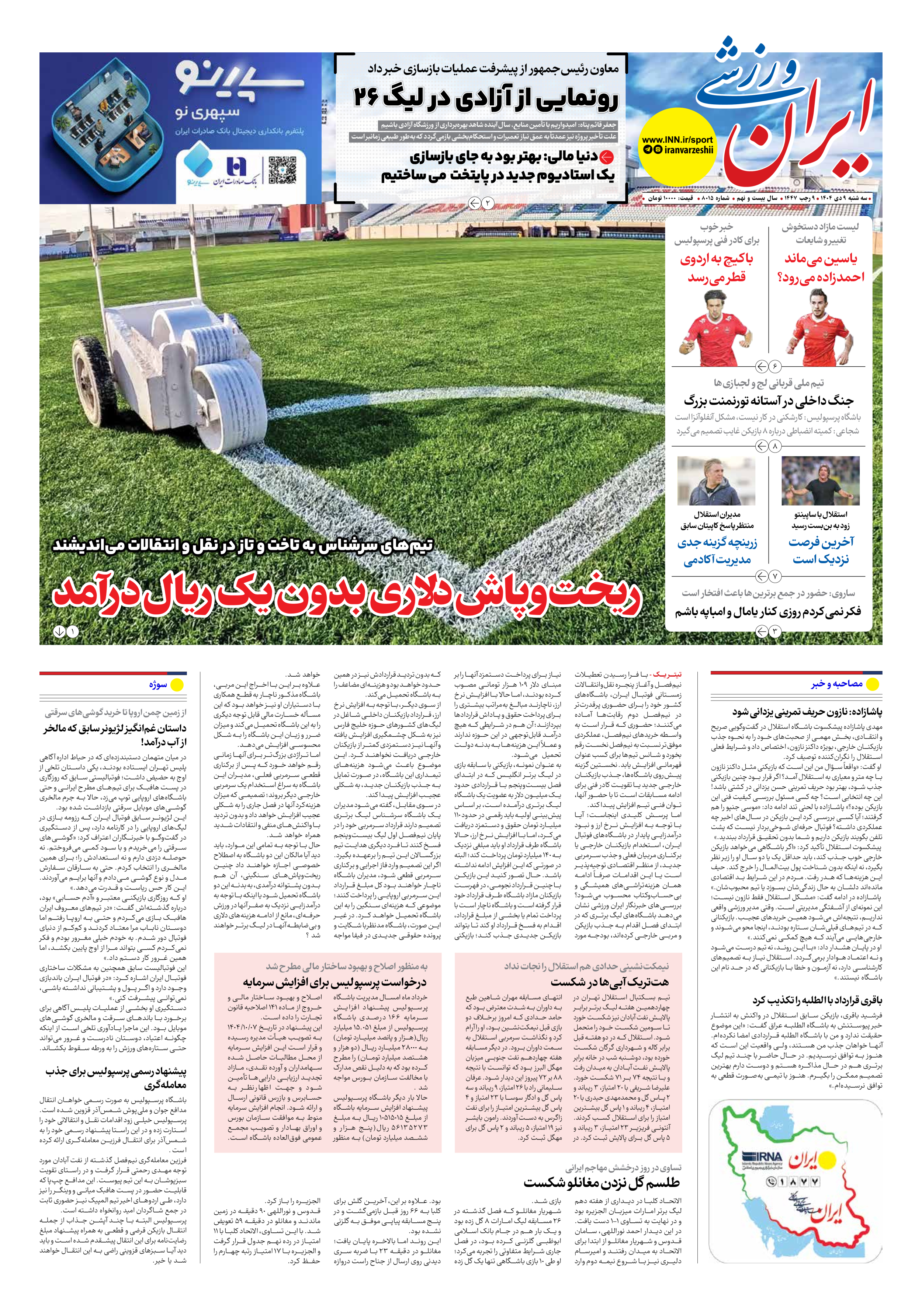 روزنامه ایران ورزشی - شماره هشت هزار و پانزده - ۰۹ دی ۱۴۰۴