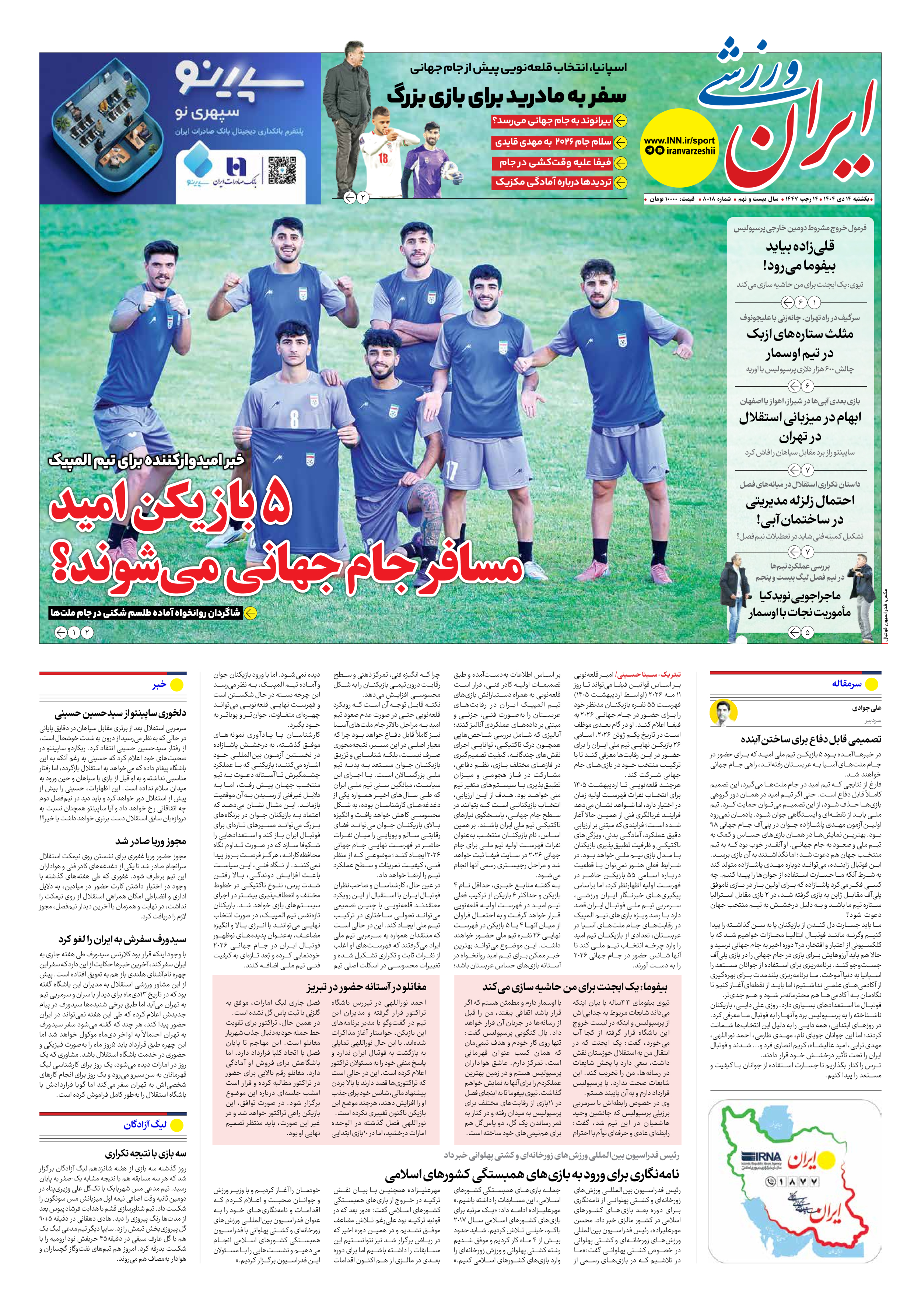 شماره هشت هزار و هجده - ۱۴ دی ۱۴۰۴