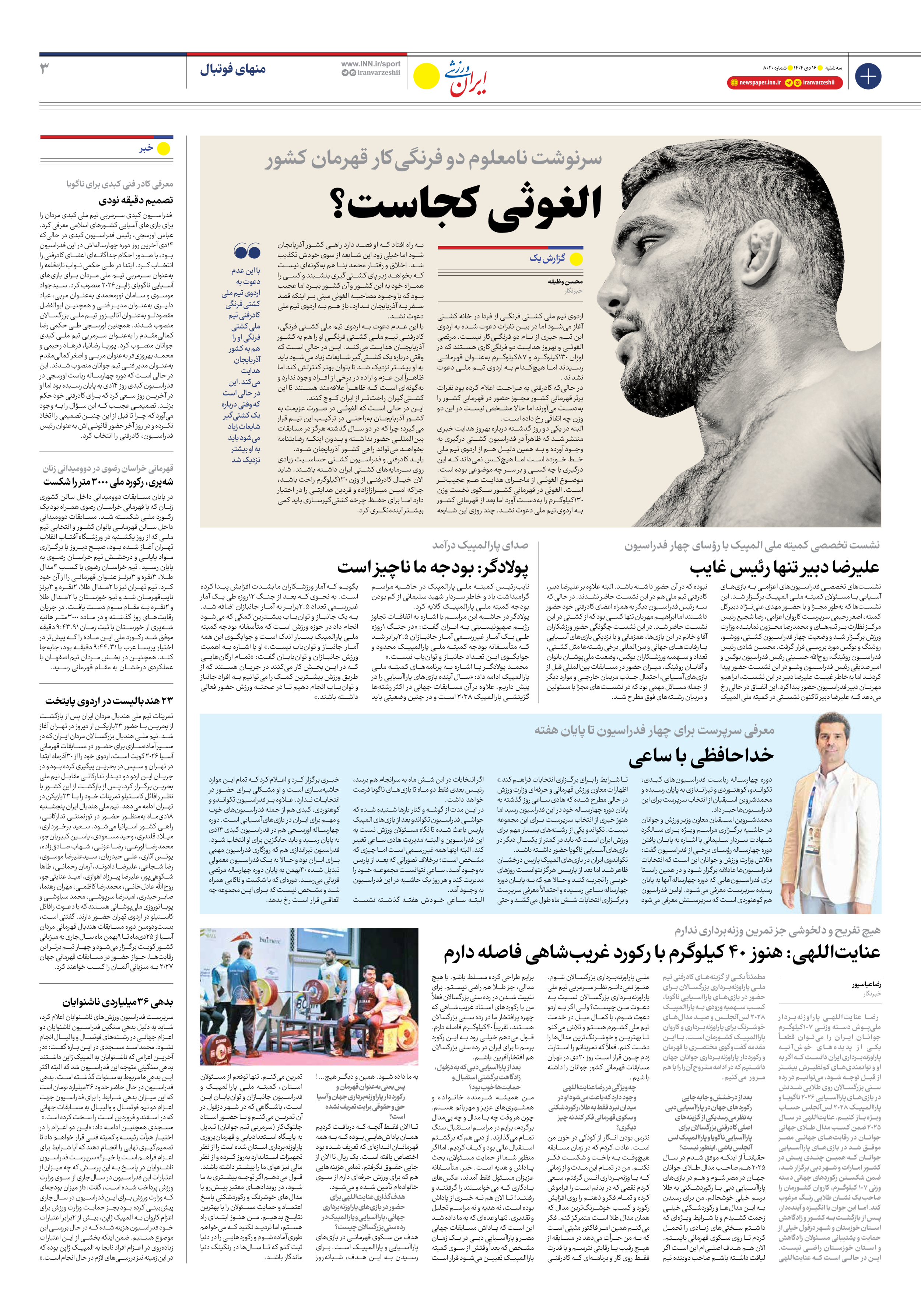 روزنامه ایران ورزشی - شماره هشت هزار و بیست - ۱۶ دی ۱۴۰۴ - صفحه ۳