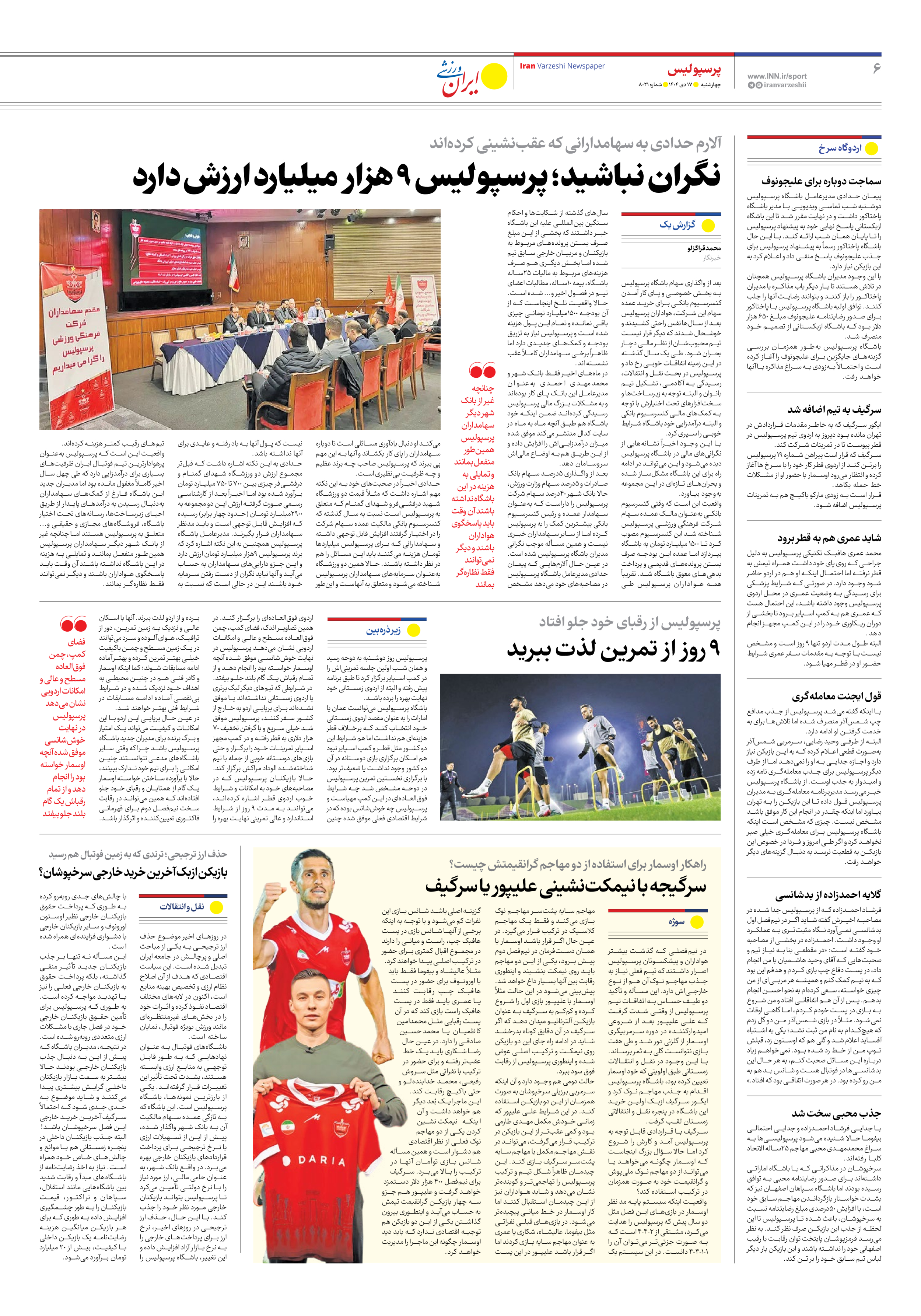 روزنامه ایران ورزشی - شماره هشت هزار و بیست و یک - ۱۷ دی ۱۴۰۴ - صفحه ۶