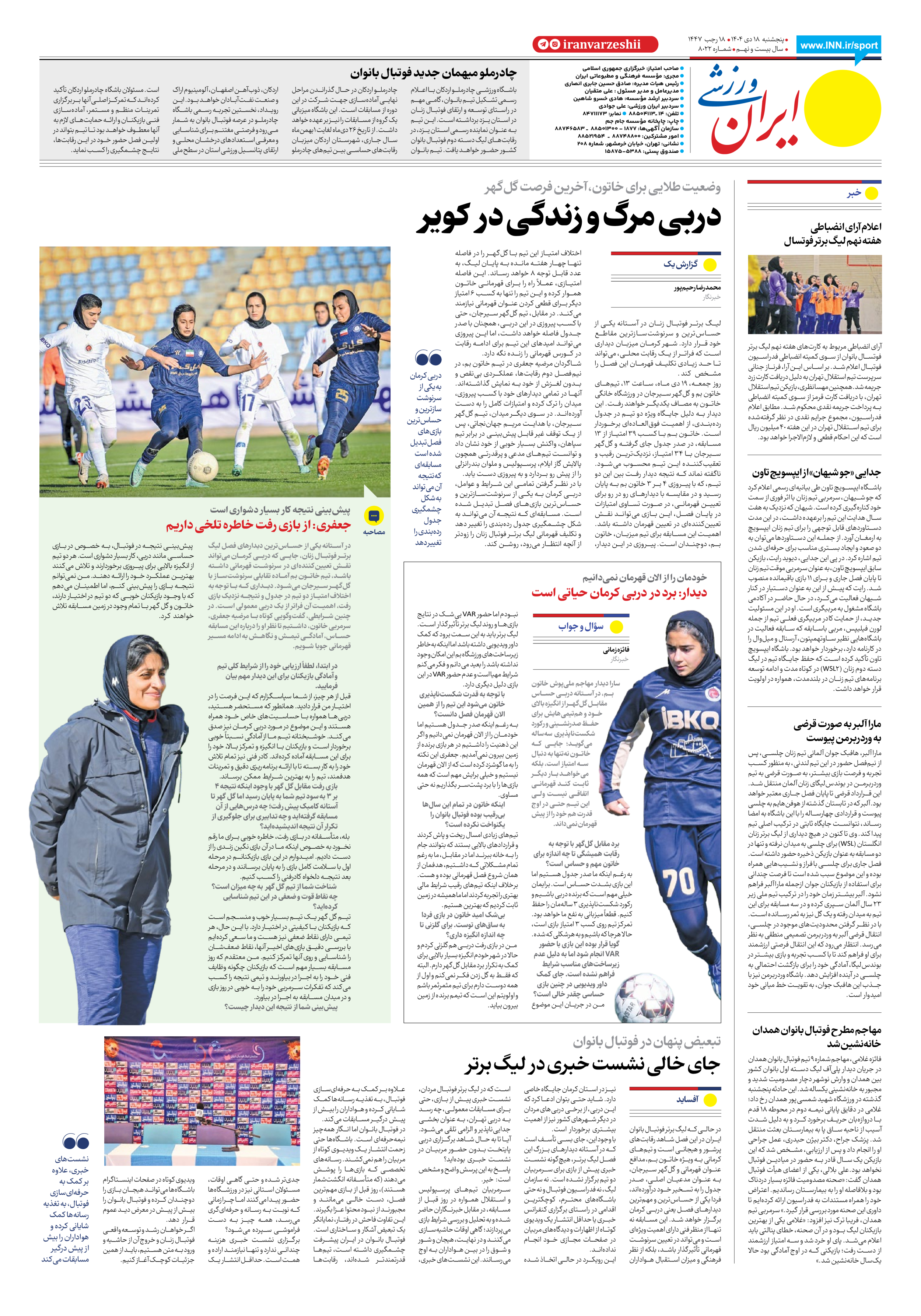 روزنامه ایران ورزشی - شماره هشت هزار و بیست و دو - ۱۸ دی ۱۴۰۴ - صفحه ۸