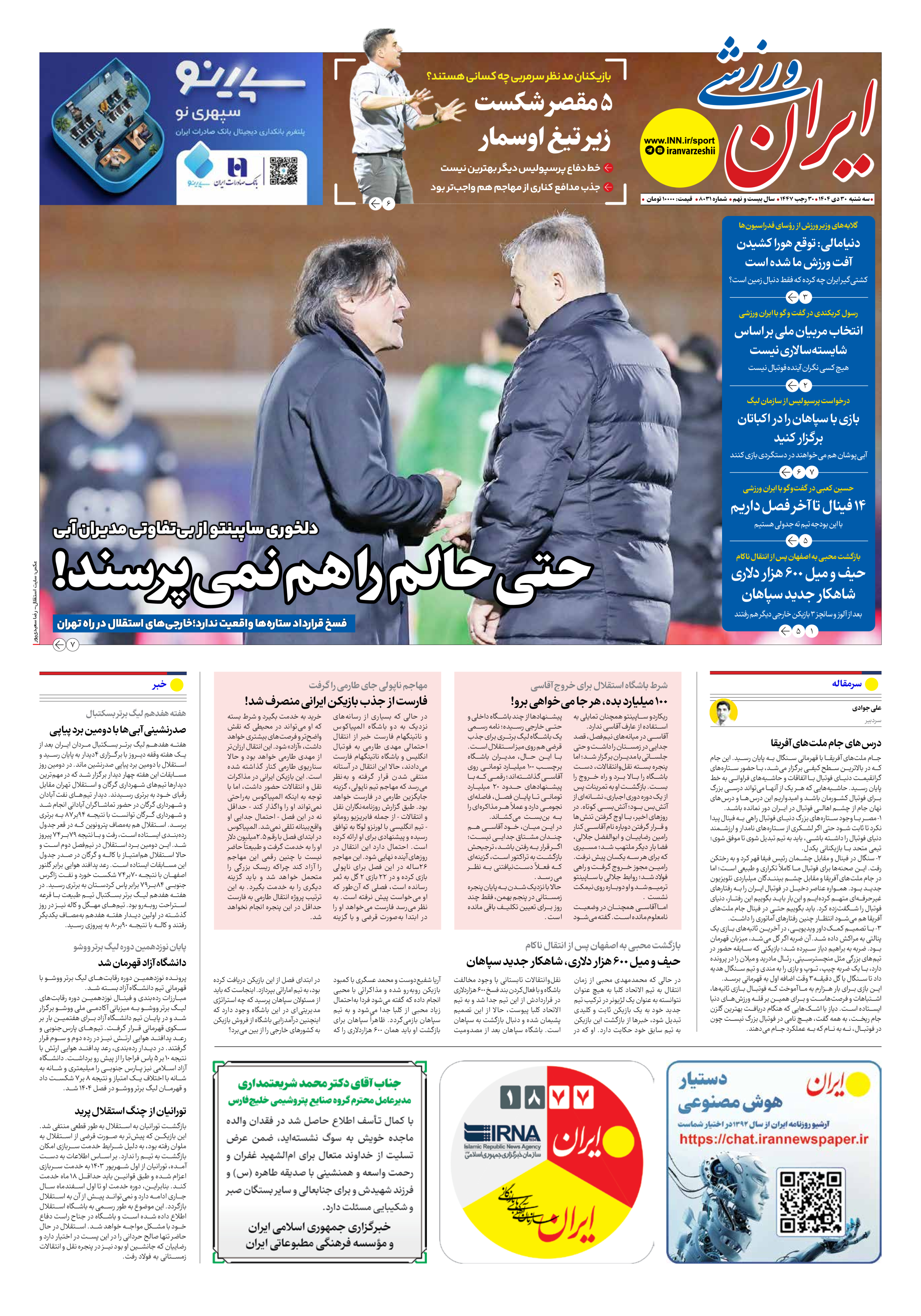 شماره هشت هزار و سی و یک - ۳۰ دی ۱۴۰۴