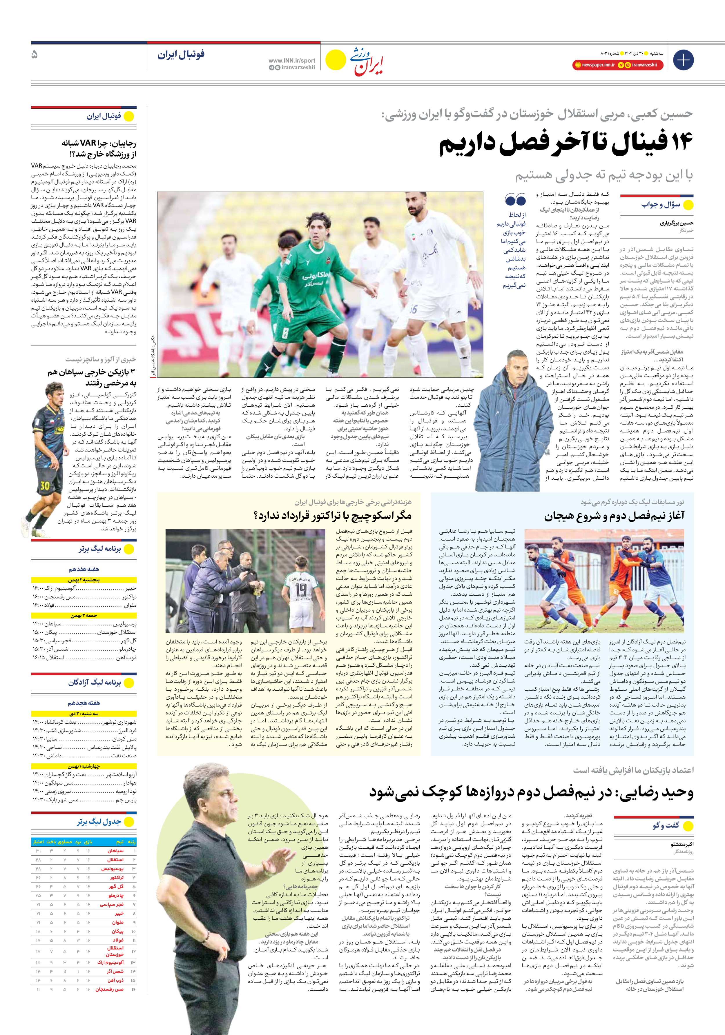 روزنامه ایران ورزشی - شماره هشت هزار و سی و یک - ۳۰ دی ۱۴۰۴ - صفحه ۵