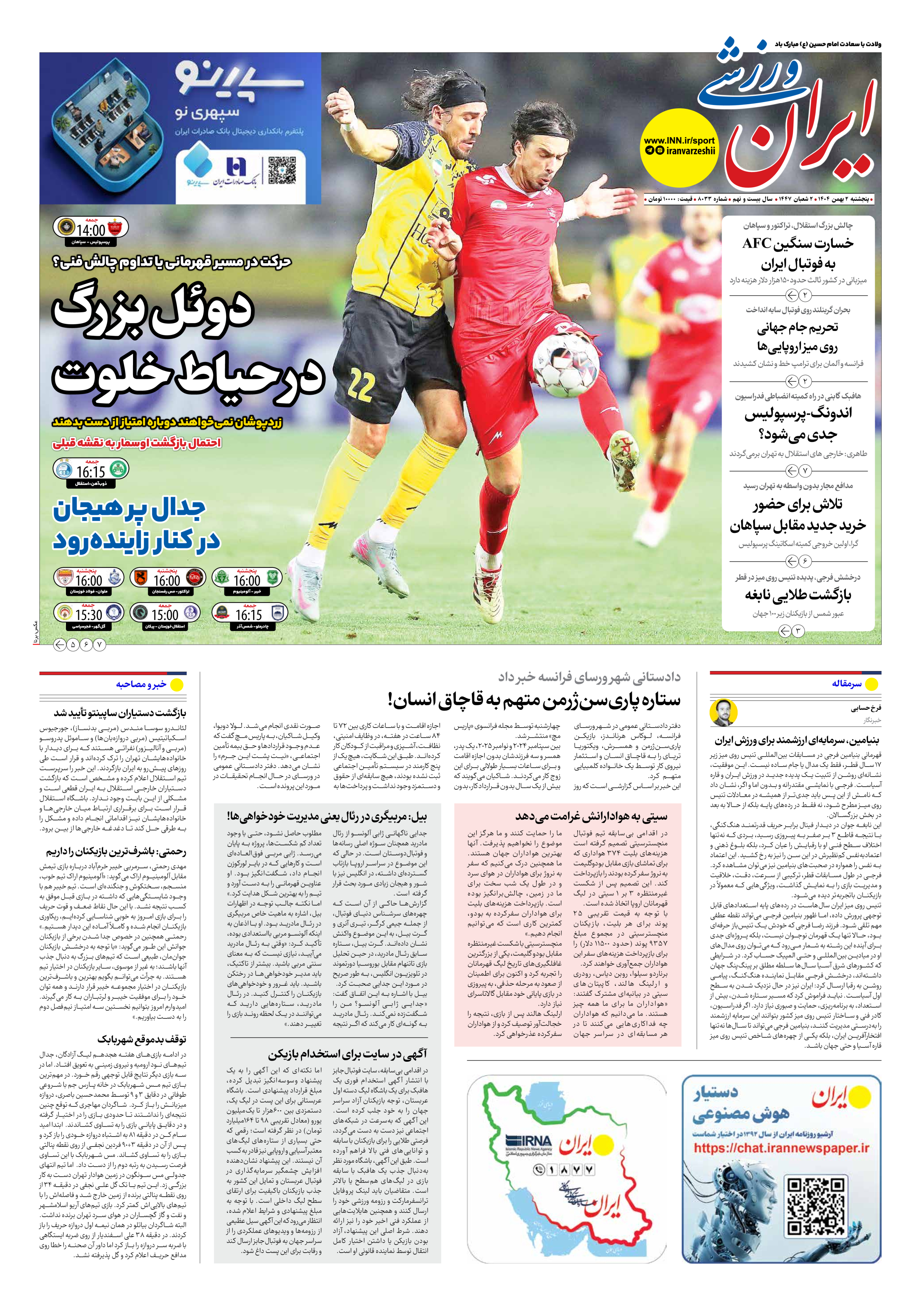 روزنامه ایران ورزشی - شماره هشت هزار و سی و سه - ۰۲ بهمن ۱۴۰۴