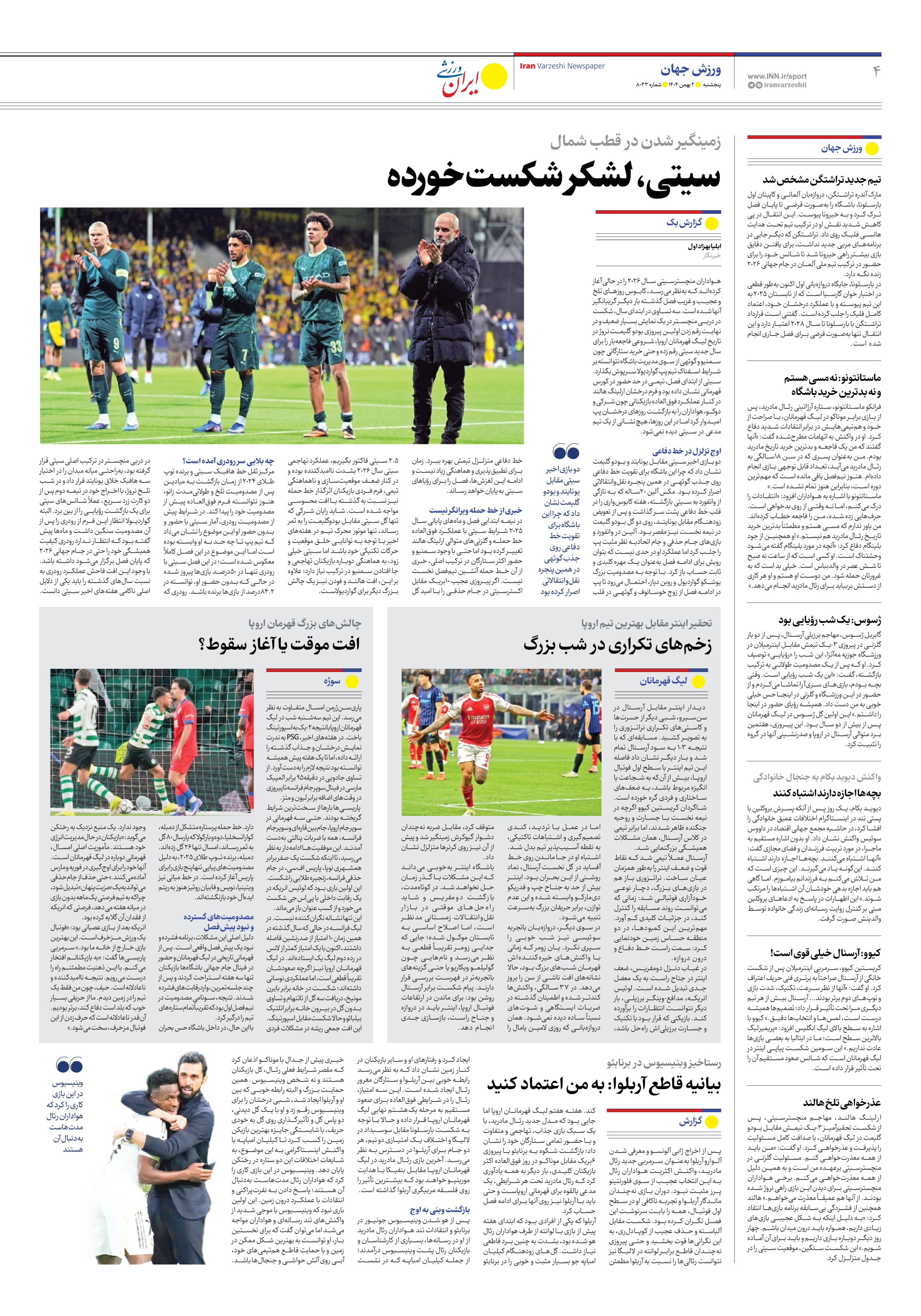 روزنامه ایران ورزشی - شماره هشت هزار و سی و سه - ۰۲ بهمن ۱۴۰۴ - صفحه ۴