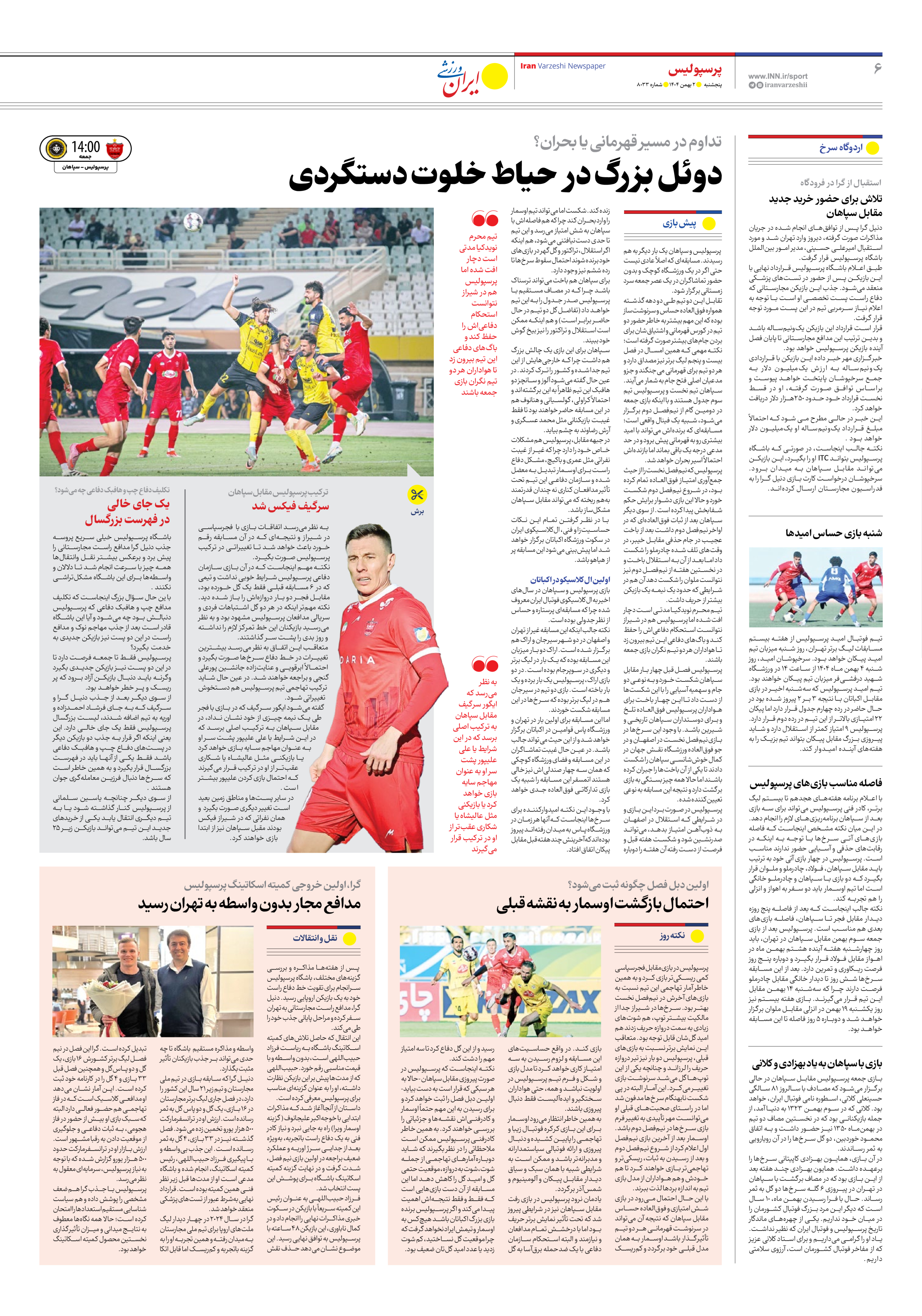 روزنامه ایران ورزشی - شماره هشت هزار و سی و سه - ۰۲ بهمن ۱۴۰۴ - صفحه ۶