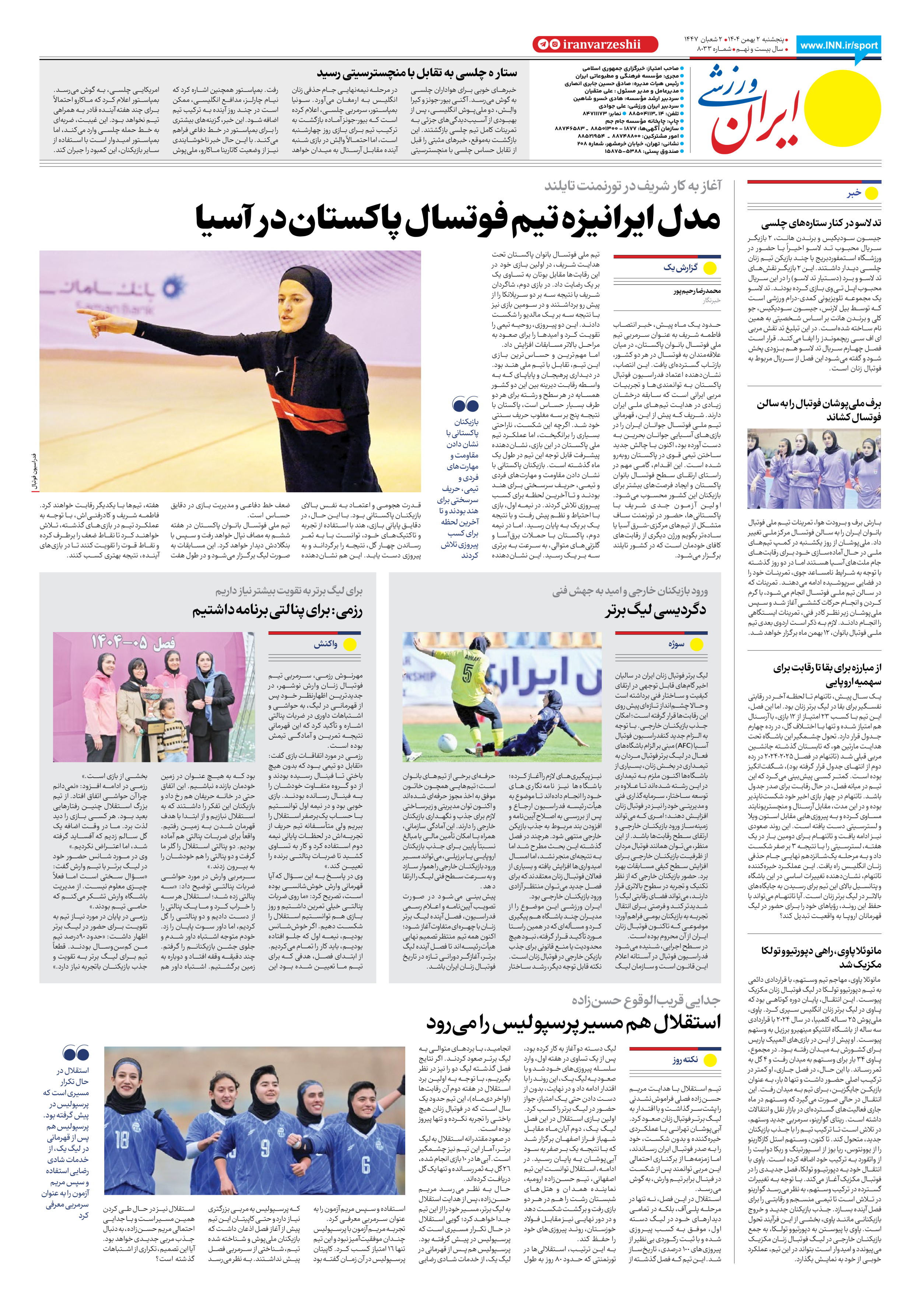 شماره هشت هزار و سی و سه - ۰۲ بهمن ۱۴۰۴