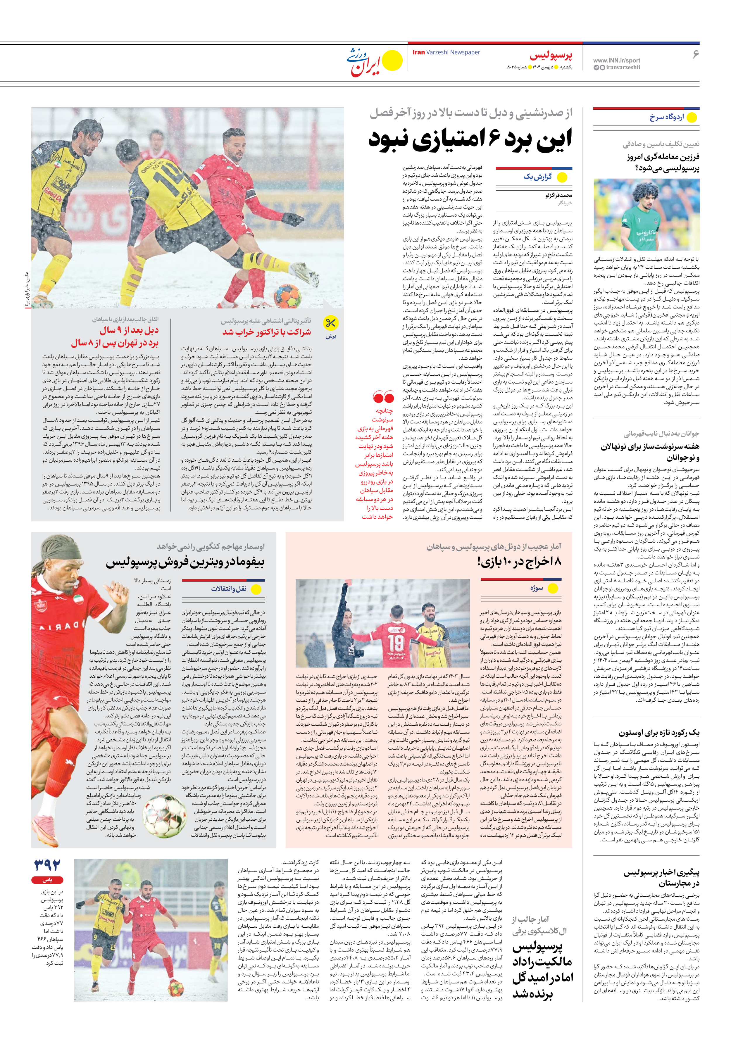 روزنامه ایران ورزشی - شماره هشت هزار و سی و پنج - ۰۵ بهمن ۱۴۰۴ - صفحه ۶