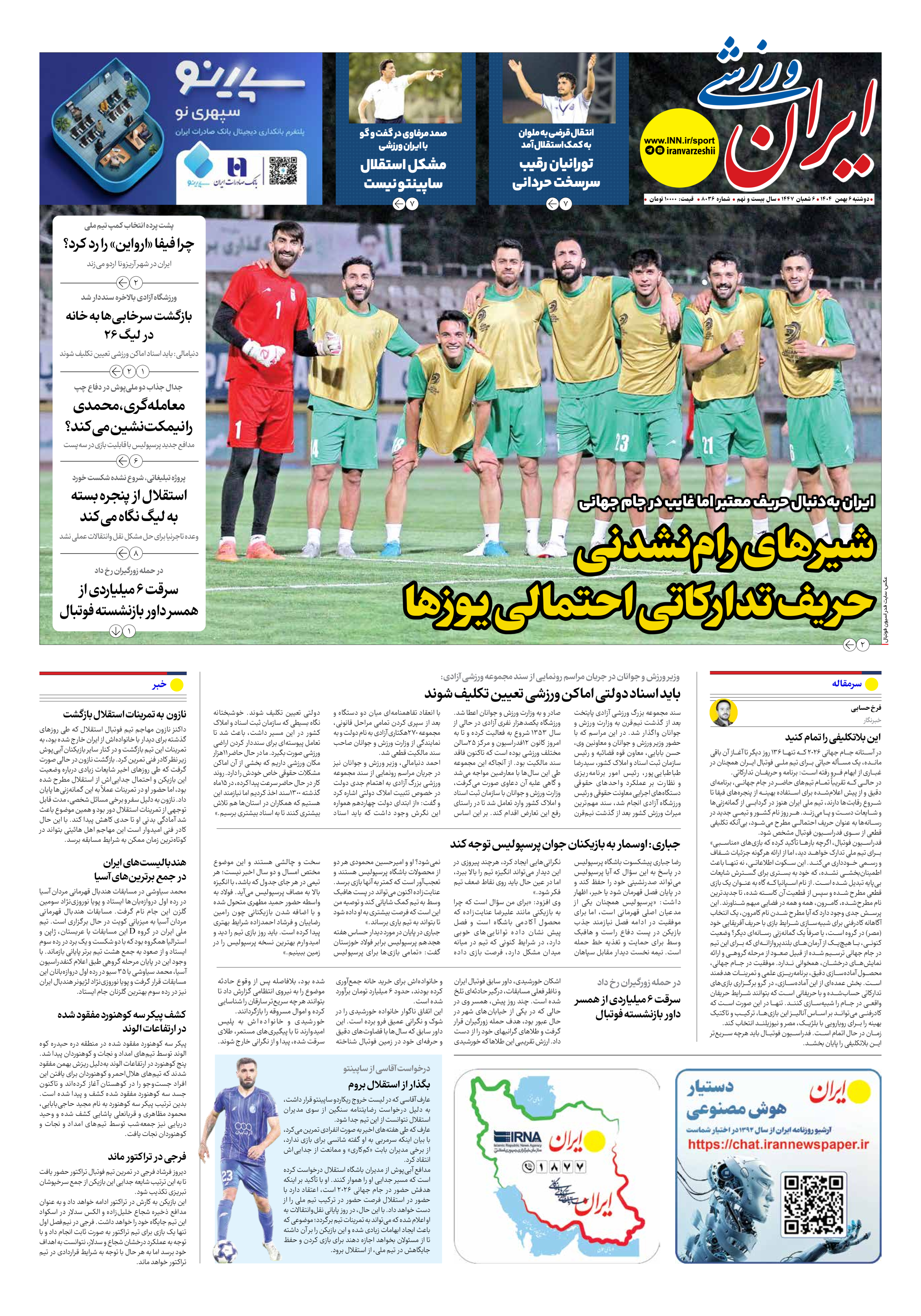 شماره هشت هزار و سی و شش - ۰۶ بهمن ۱۴۰۴
