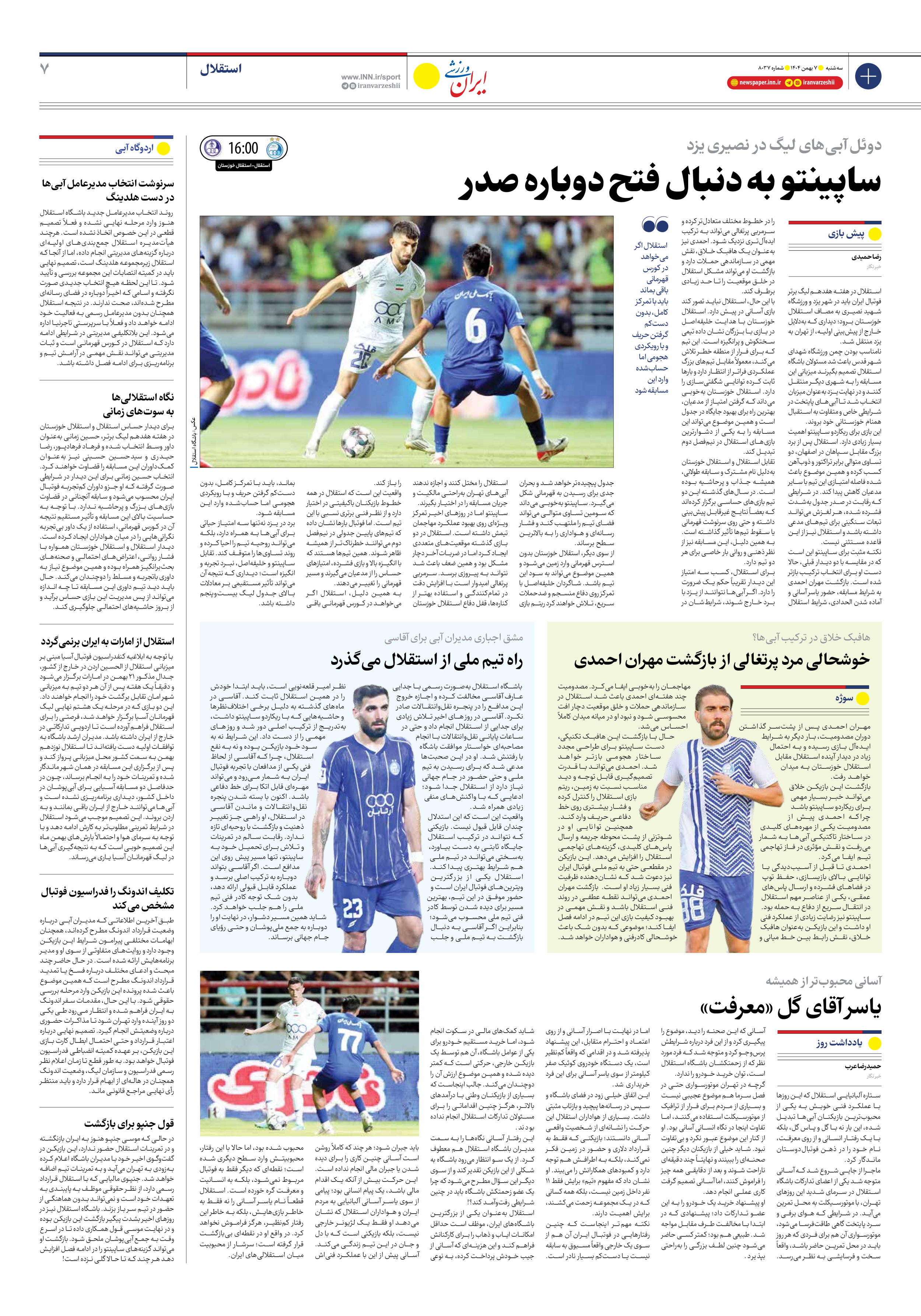 روزنامه ایران ورزشی - شماره هشت هزار و سی و هفت - ۰۷ بهمن ۱۴۰۴ - صفحه ۷