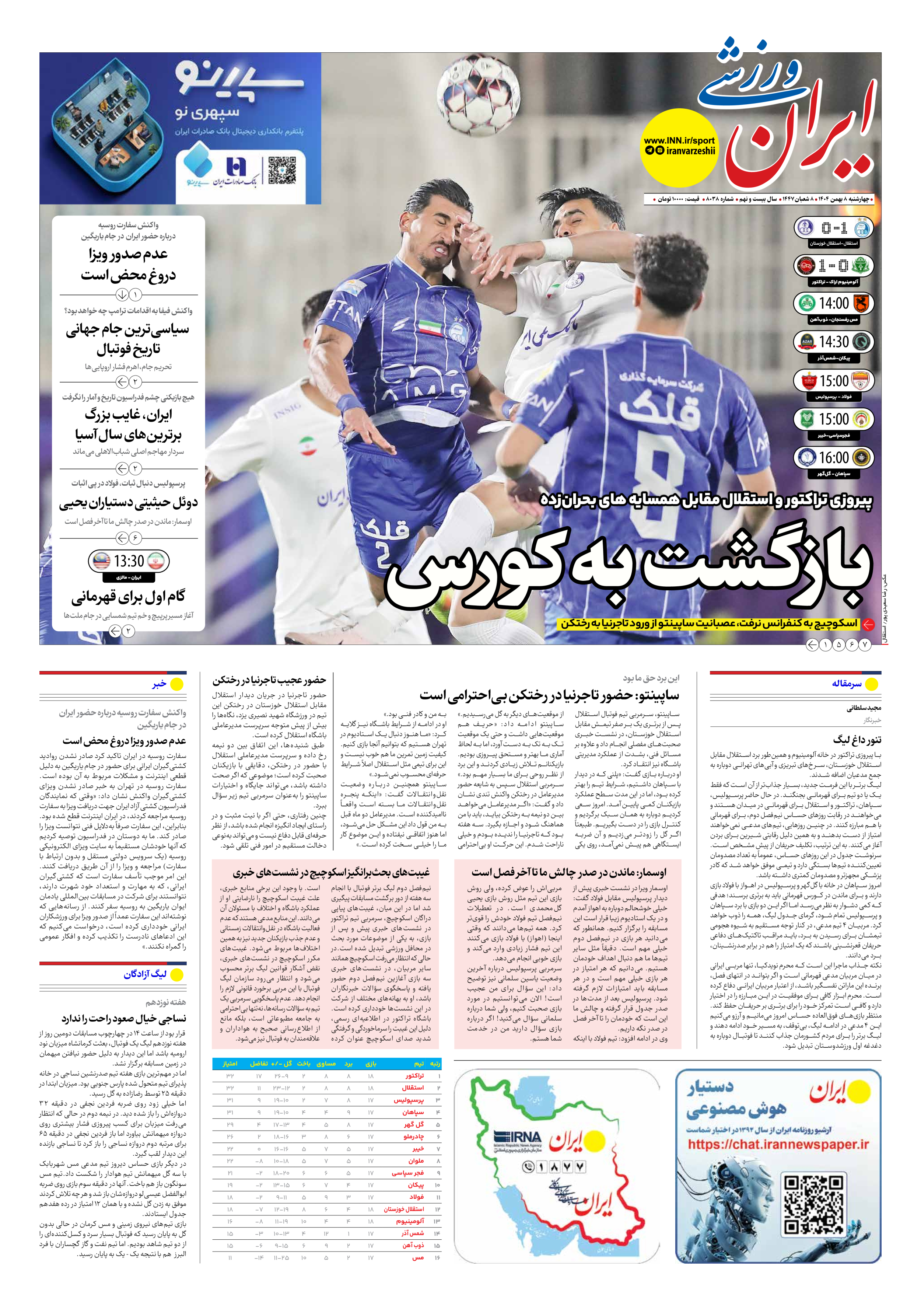 روزنامه ایران ورزشی - شماره هشت هزار و سی و هشت - ۰۸ بهمن ۱۴۰۴