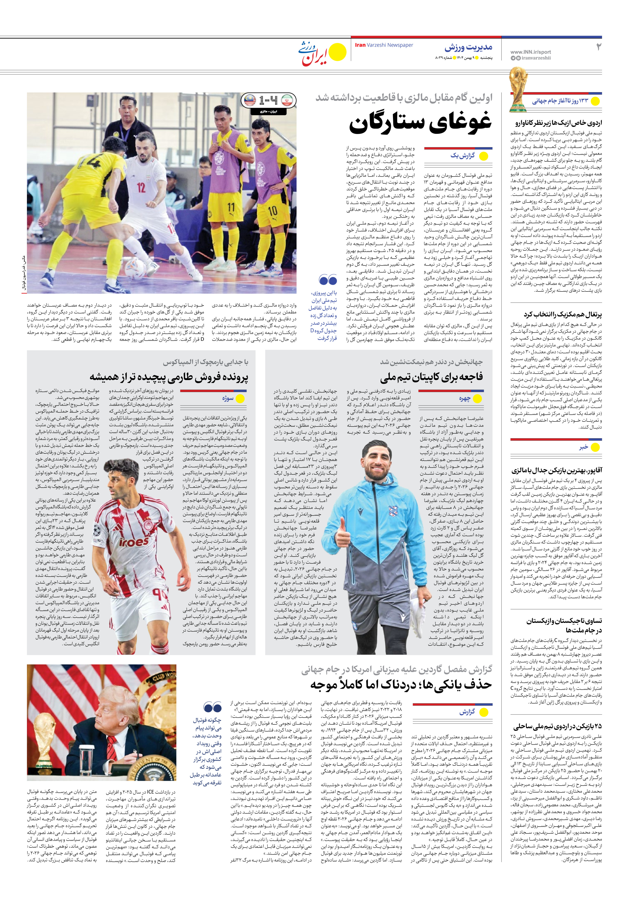 روزنامه ایران ورزشی - شماره هشت هزار و سی و نه - ۰۹ بهمن ۱۴۰۴ - صفحه ۲