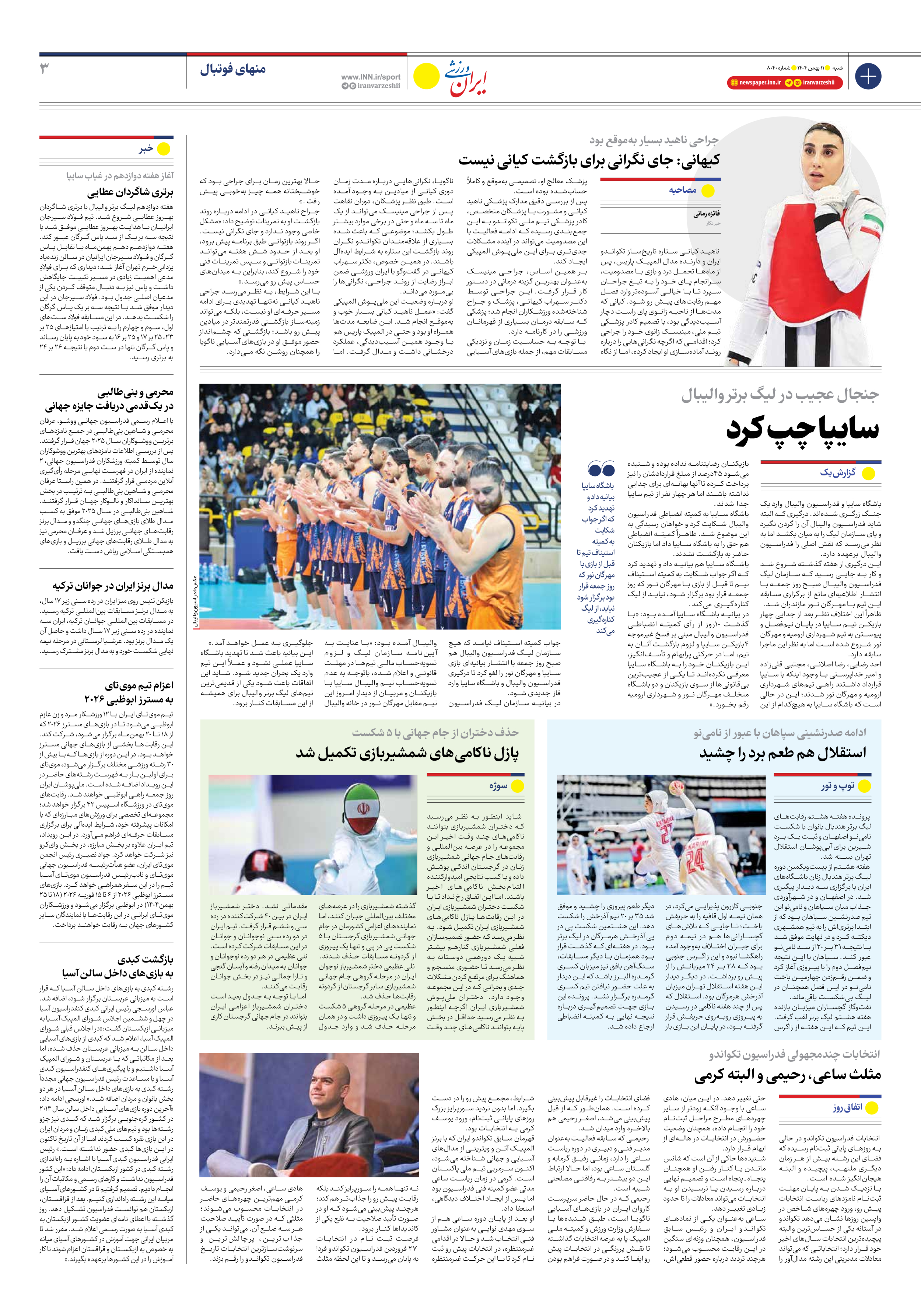 روزنامه ایران ورزشی - شماره هشت هزار و چهل - ۱۱ بهمن ۱۴۰۴ - صفحه ۳