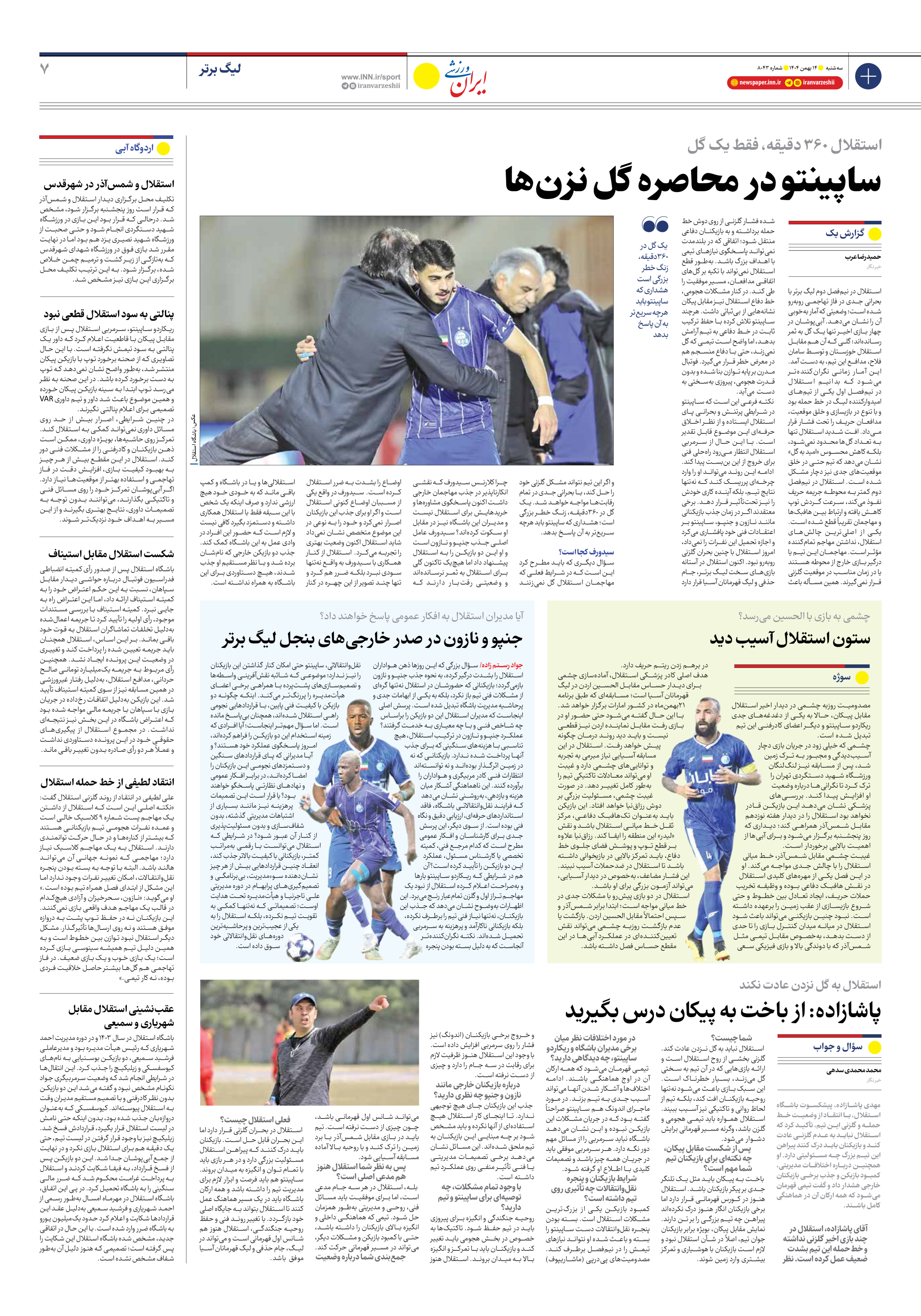 روزنامه ایران ورزشی - شماره هشت هزار و چهل و سه - ۱۴ بهمن ۱۴۰۴ - صفحه ۷