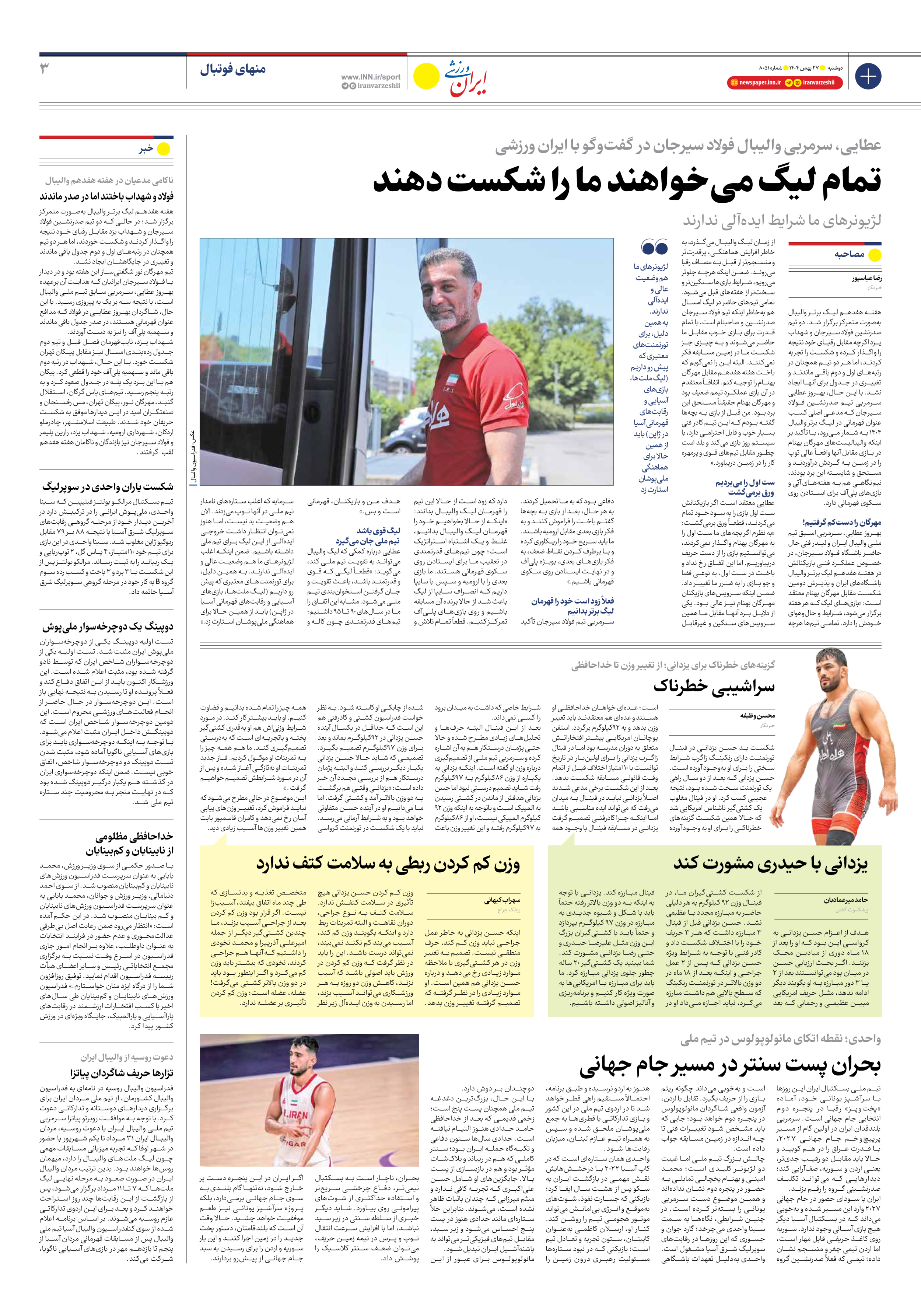 روزنامه ایران ورزشی - شماره هشت هزار و پنجاه و یک - ۲۷ بهمن ۱۴۰۴ - صفحه ۳