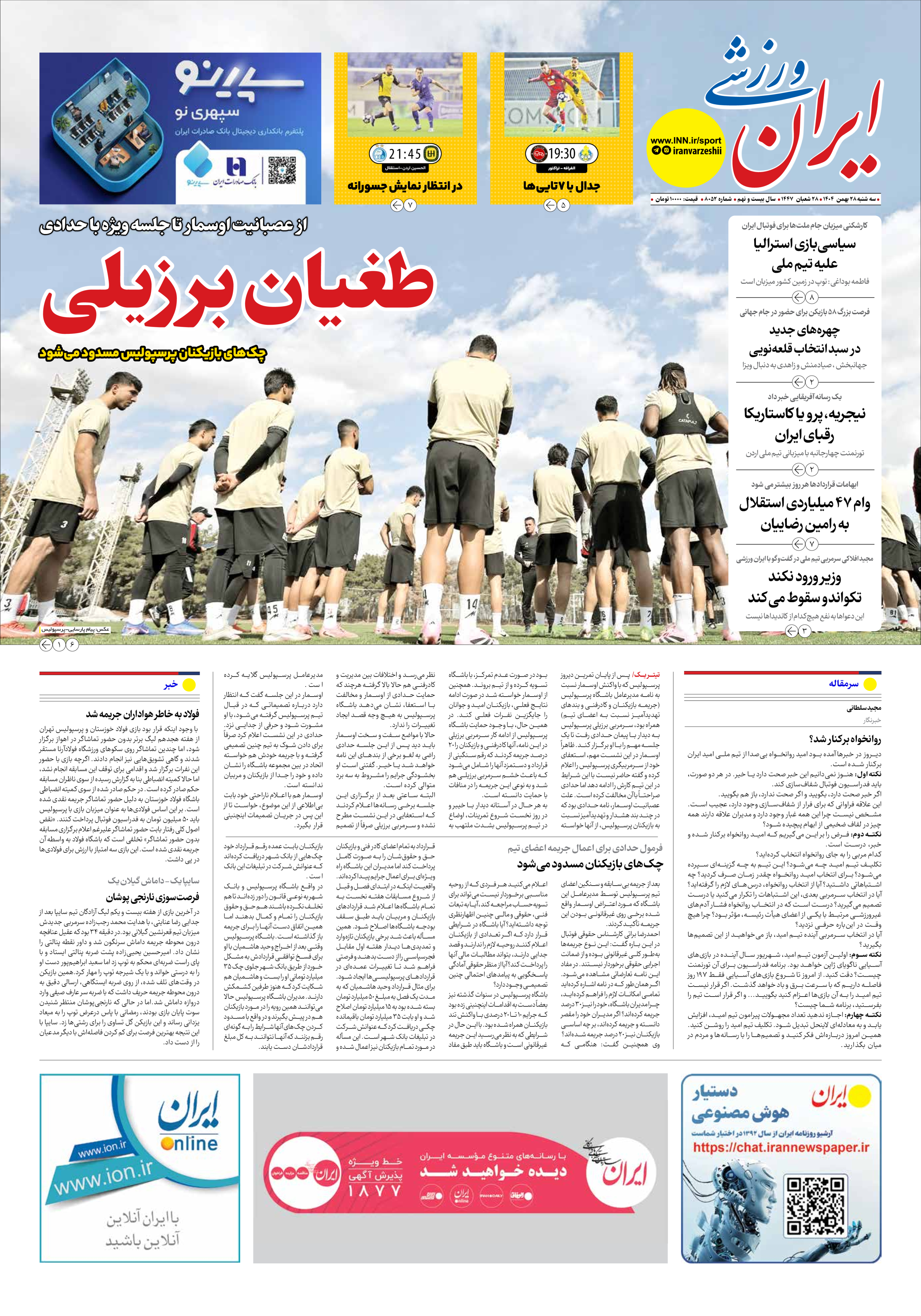 شماره هشت هزار و پنجاه و دو - ۲۸ بهمن ۱۴۰۴