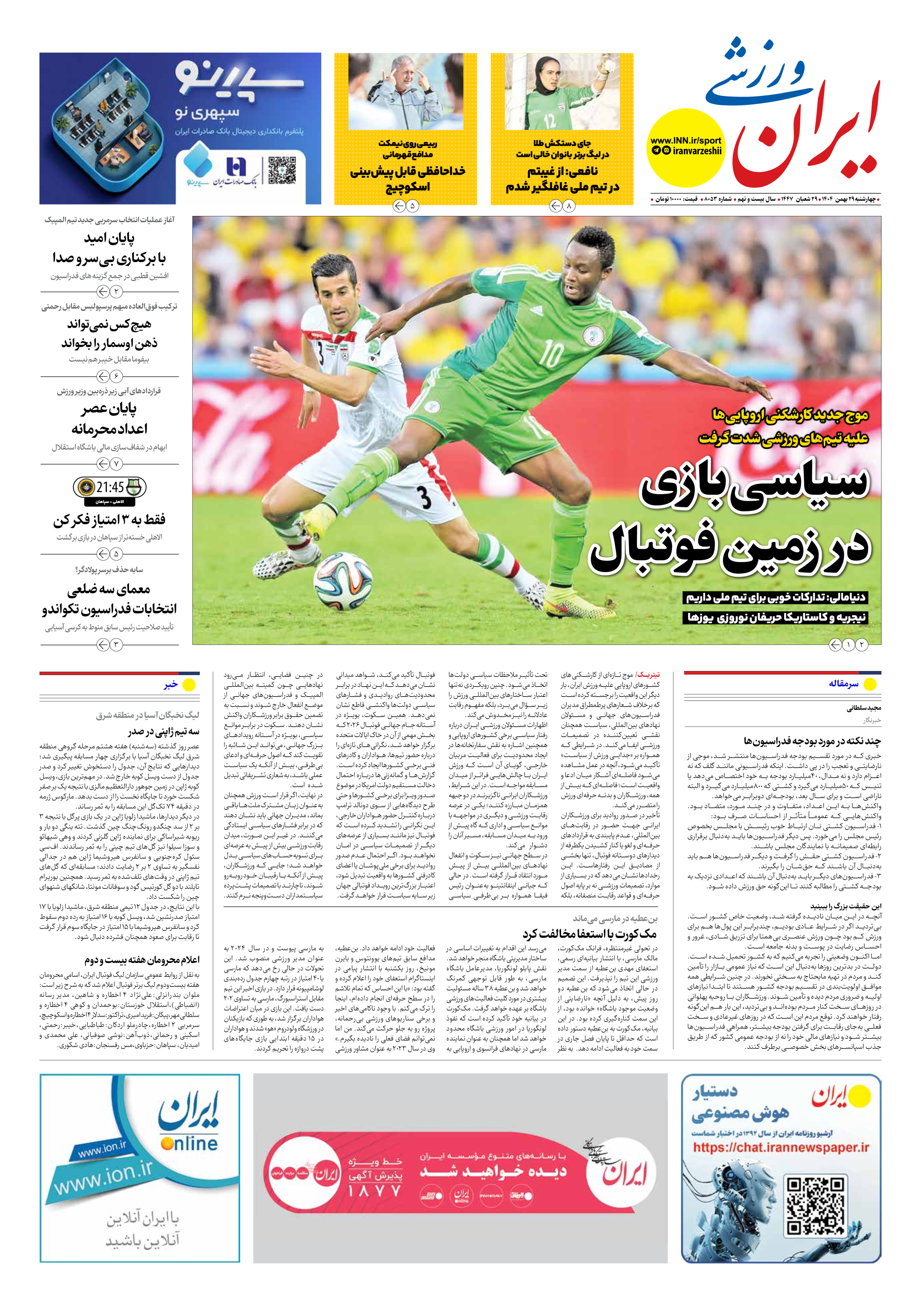 شماره هشت هزار و پنجاه و سه - ۲۹ بهمن ۱۴۰۴
