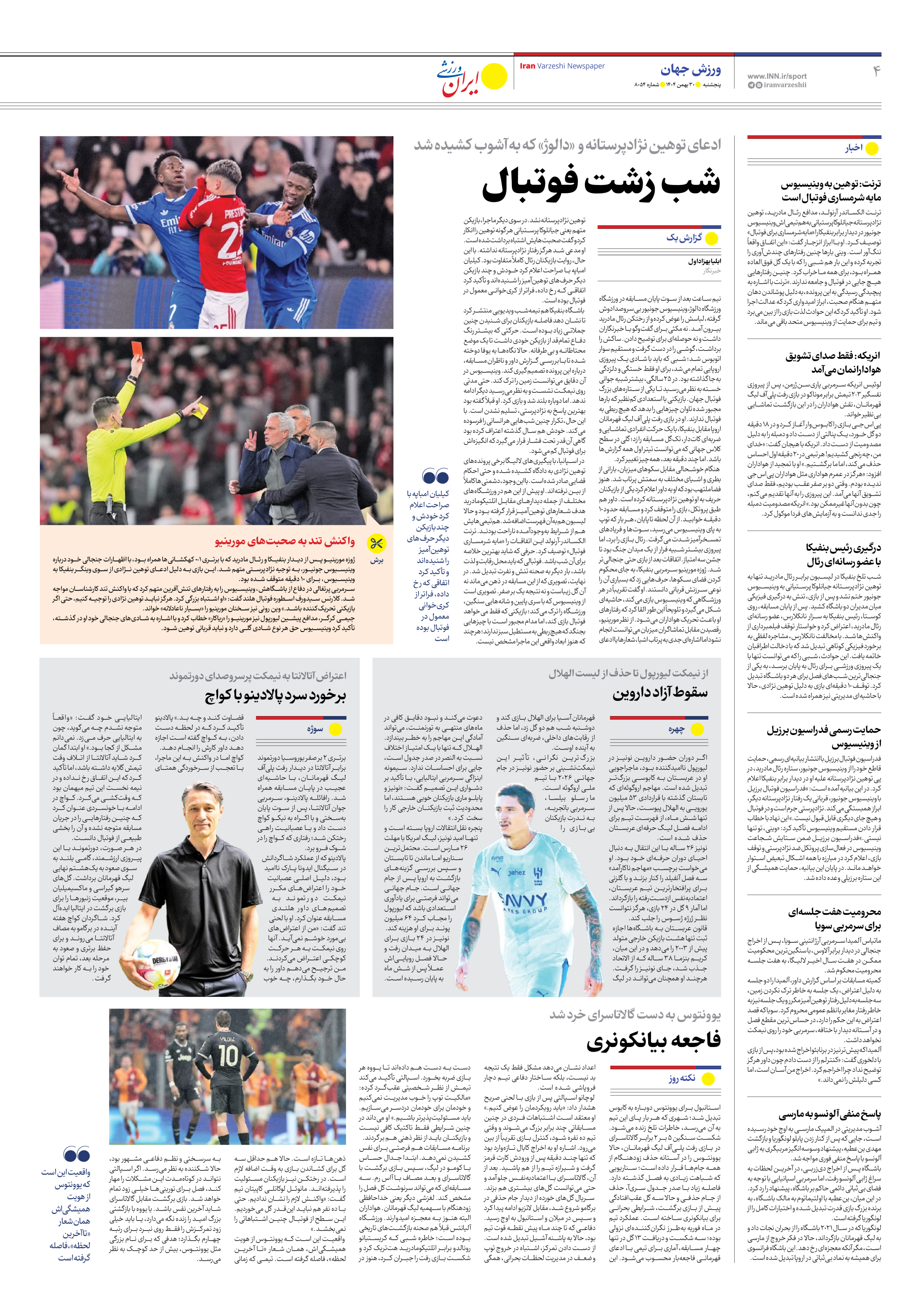 روزنامه ایران ورزشی - شماره هشت هزار و پنجاه و چهار - ۳۰ بهمن ۱۴۰۴ - صفحه ۴
