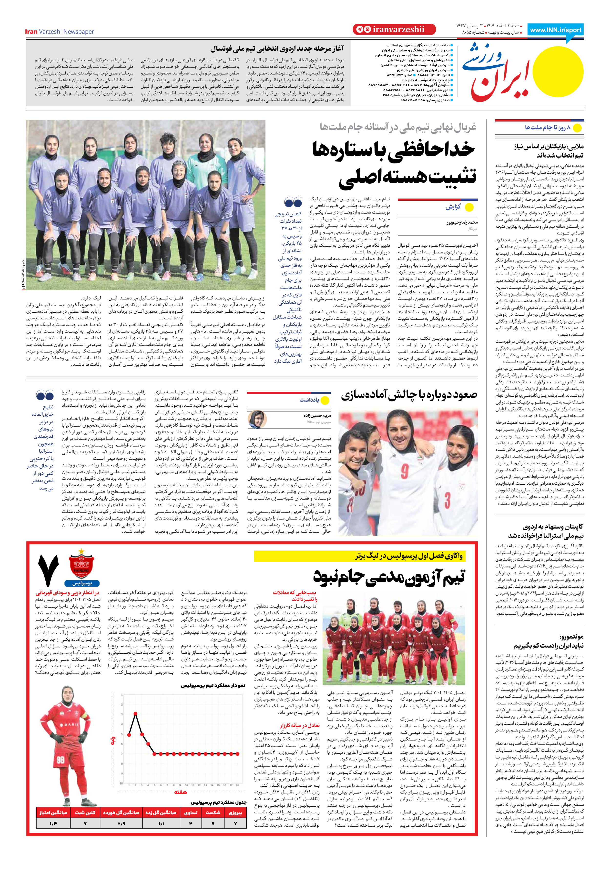 روزنامه ایران ورزشی - شماره هشت هزار و پنجاه و پنج - ۰۲ اسفند ۱۴۰۴ - صفحه ۸