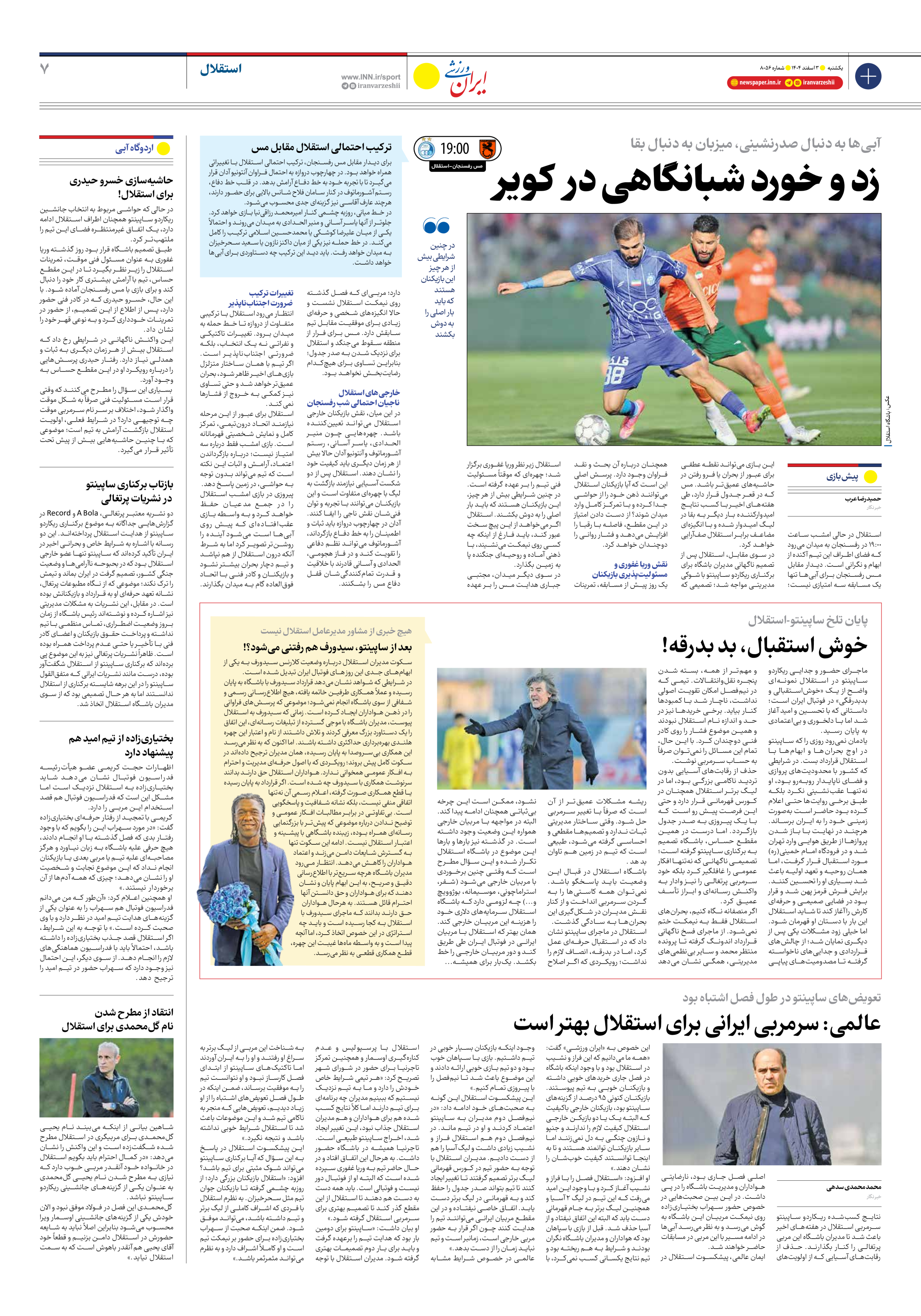روزنامه ایران ورزشی - شماره هشت هزار و پنجاه و شش - ۰۳ اسفند ۱۴۰۴ - صفحه ۷