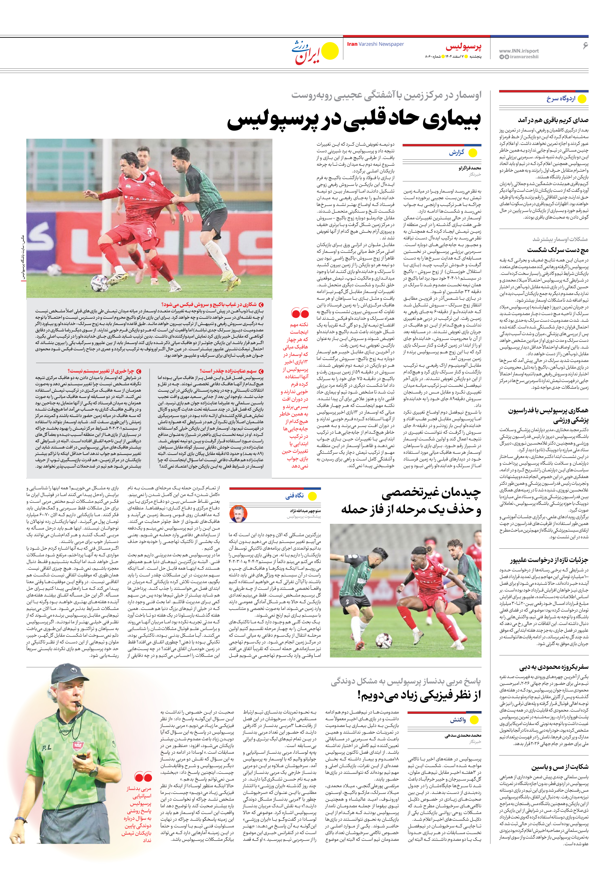 روزنامه ایران ورزشی - شماره هشت هزار و شصت - ۰۷ اسفند ۱۴۰۴ - صفحه ۶