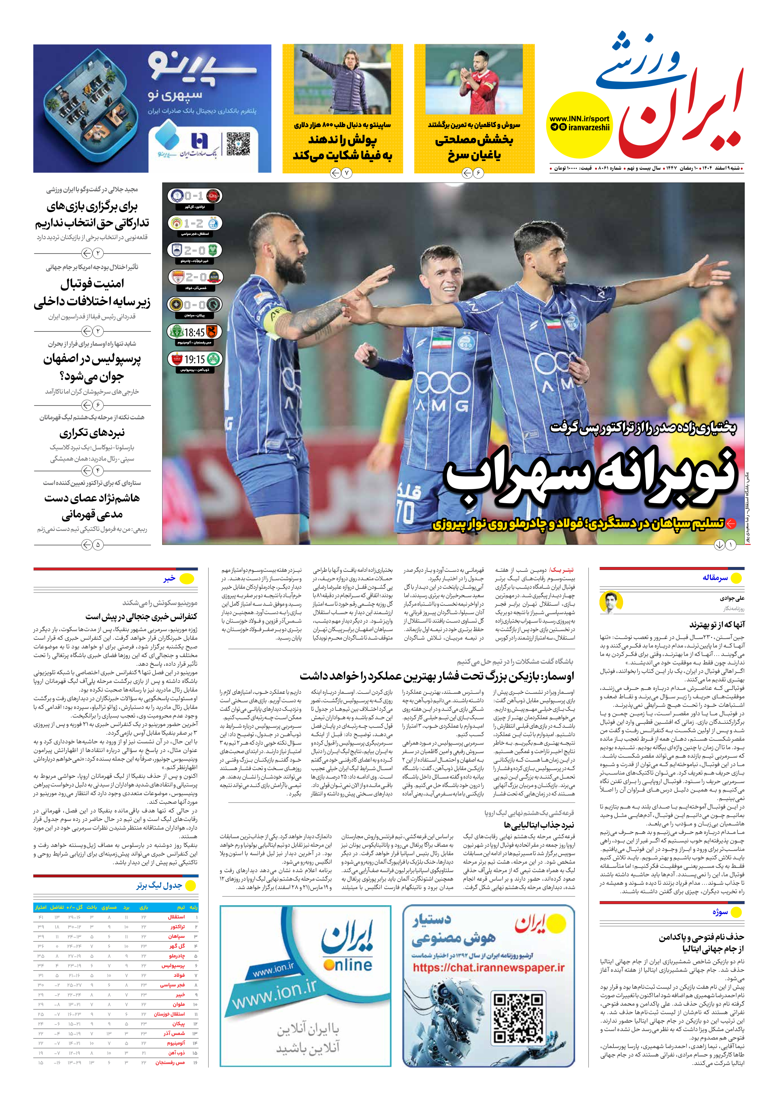 شماره هشت هزار و شصت و یک - ۰۹ اسفند ۱۴۰۴
