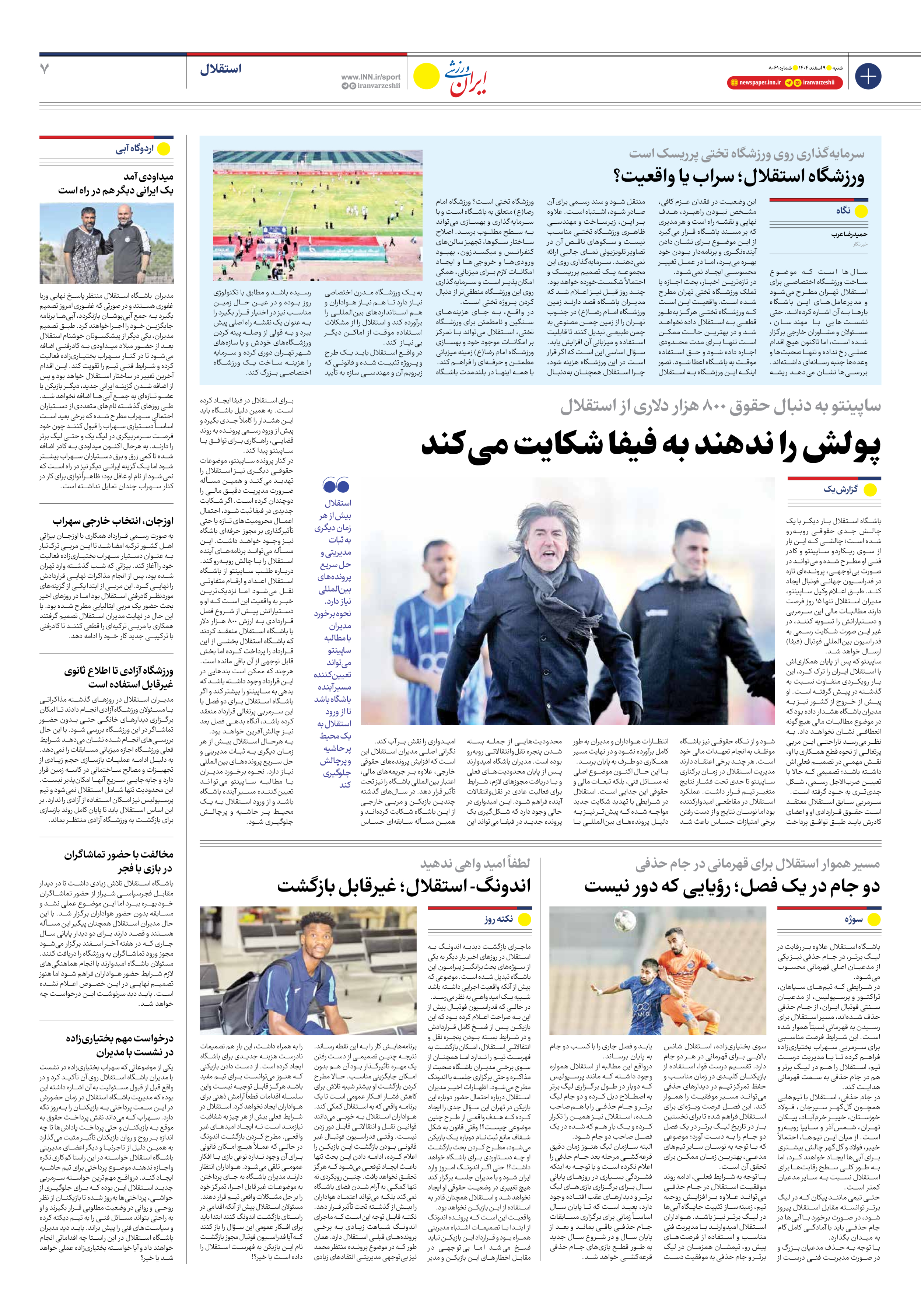روزنامه ایران ورزشی - شماره هشت هزار و شصت و یک - ۰۹ اسفند ۱۴۰۴ - صفحه ۷