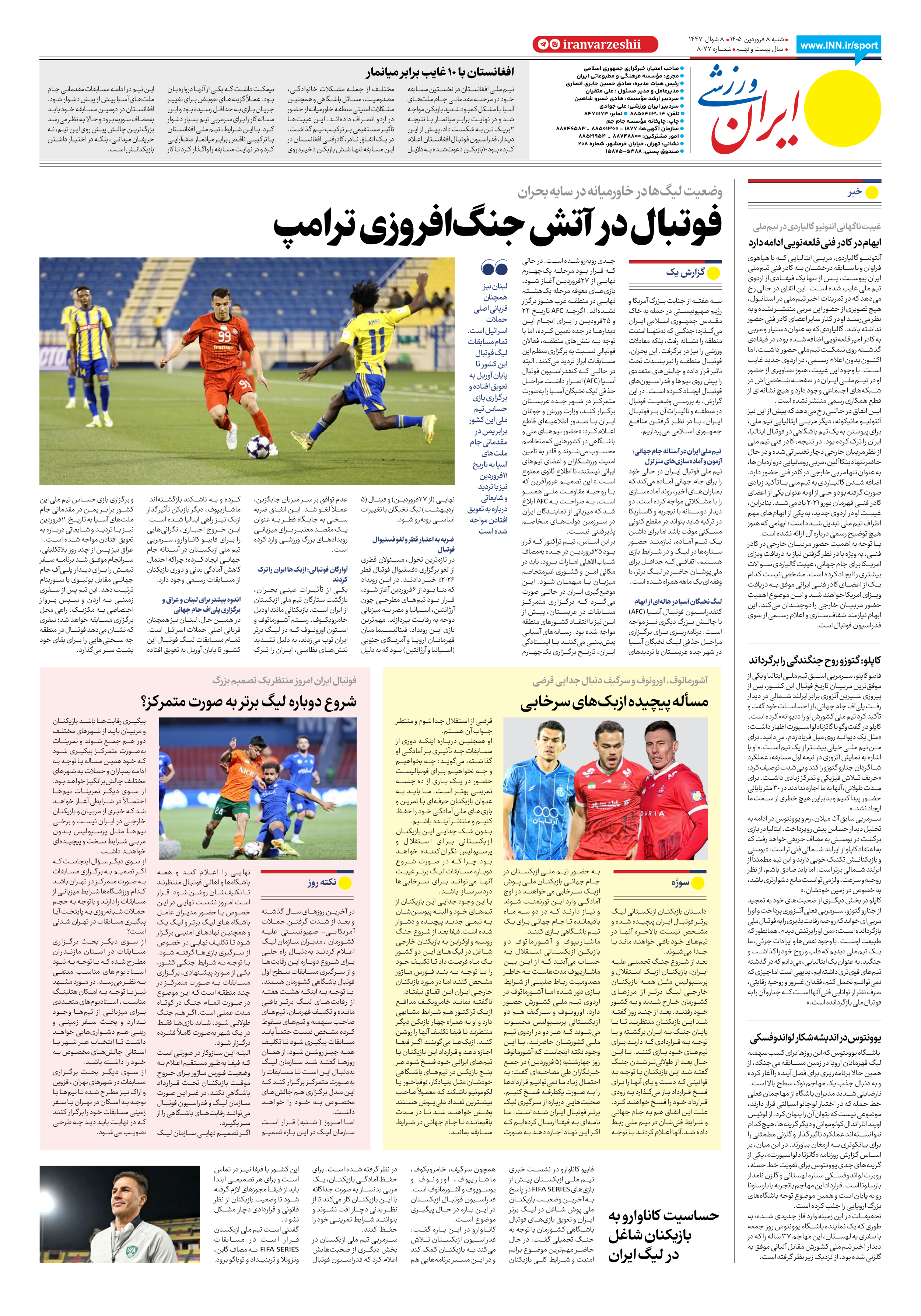 شماره هشت هزار و هفتاد و هفت - ۰۸ فروردین ۱۴۰۵