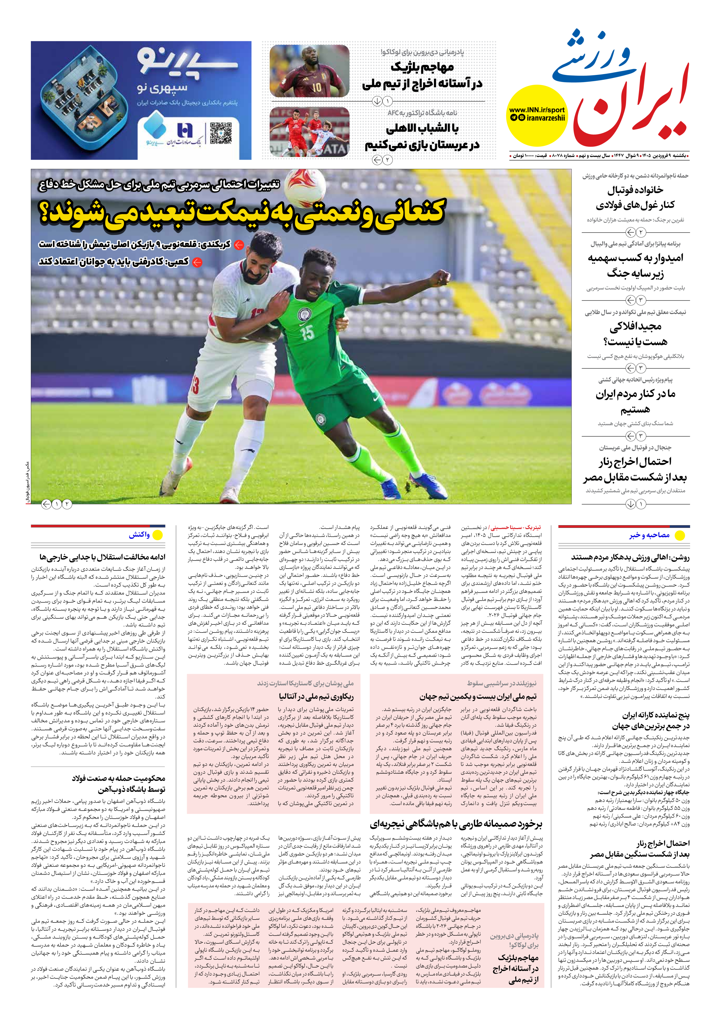 روزنامه ایران ورزشی - شماره هشت هزار و هفتاد و هشت - ۰۹ فروردین ۱۴۰۵