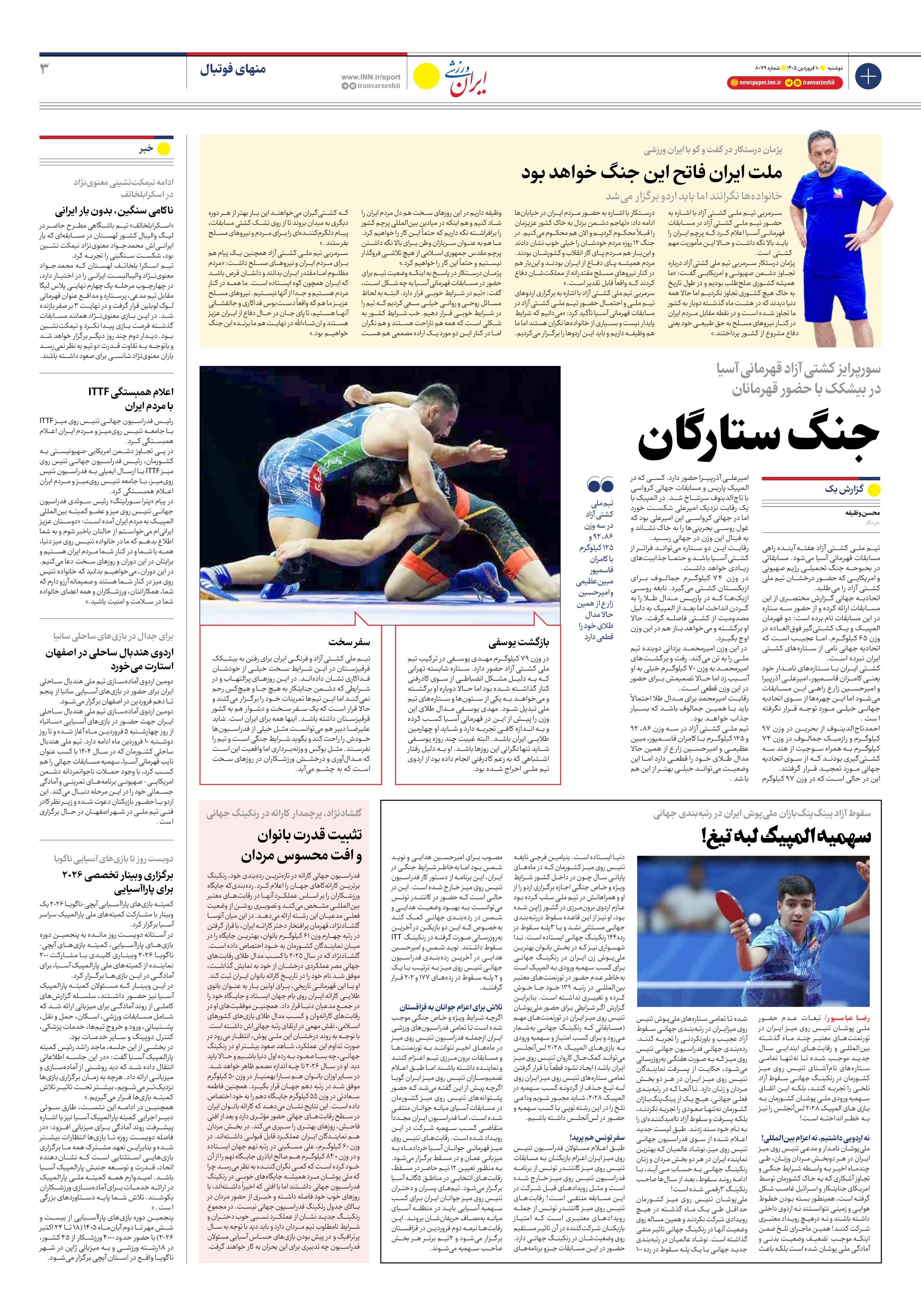 روزنامه ایران ورزشی - شماره هشت هزار و هفتاد و نه - ۱۰ فروردین ۱۴۰۵ - صفحه ۳