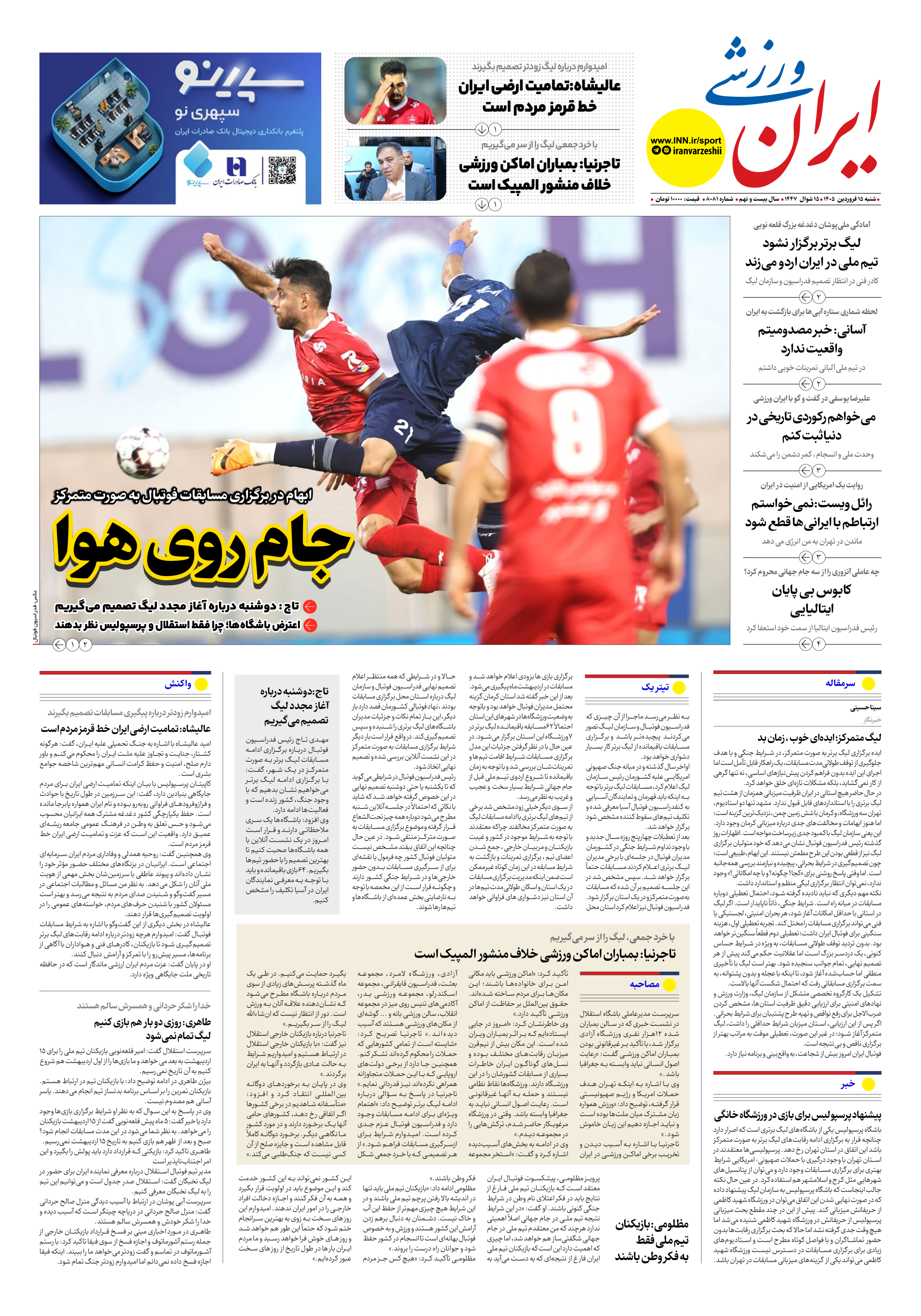 روزنامه ایران ورزشی - شماره هشت هزار و هشتاد و یک - ۱۵ فروردین ۱۴۰۵