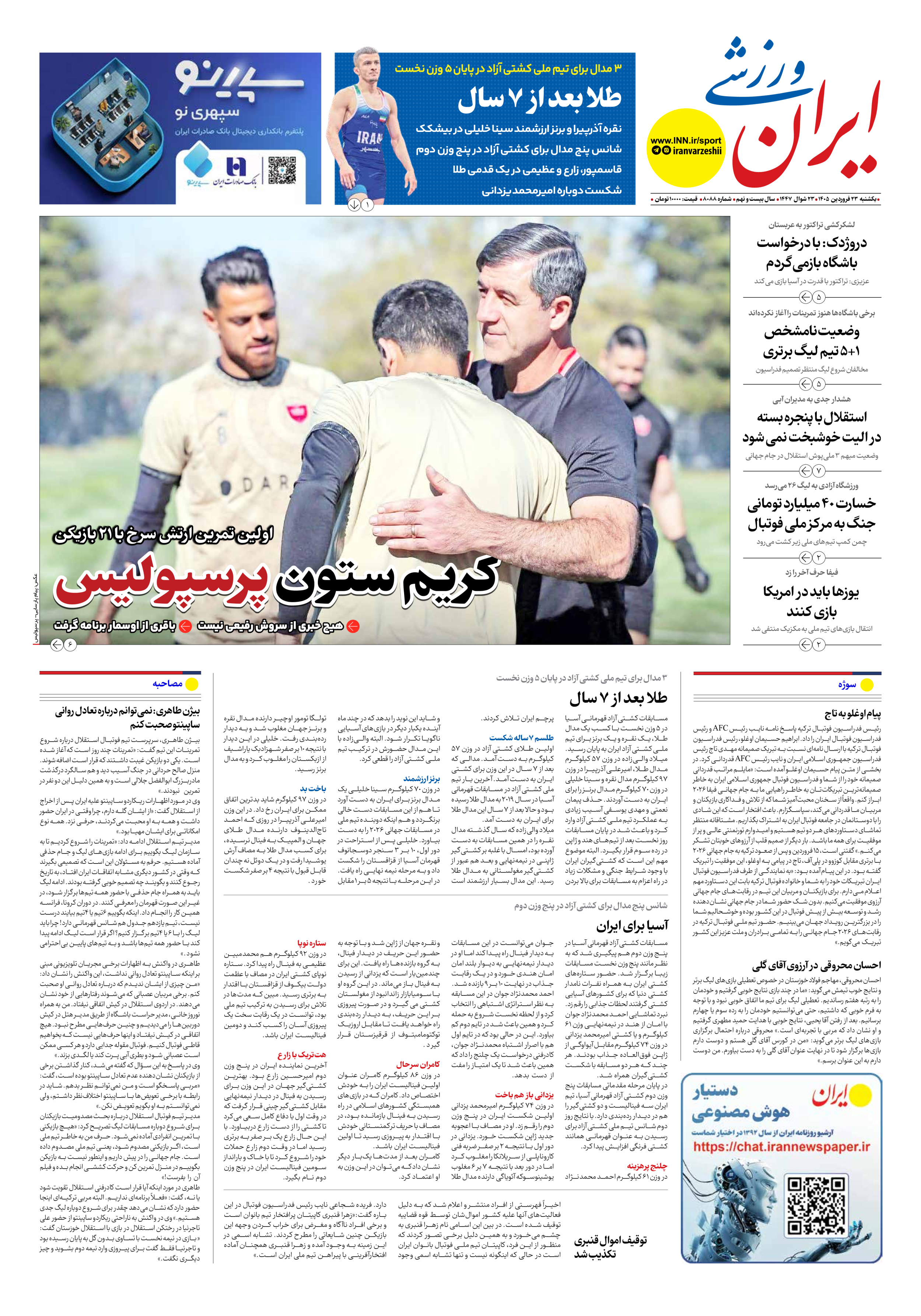 روزنامه ایران ورزشی - شماره هشت هزار و هشتاد و هشت - ۲۳ فروردین ۱۴۰۵
