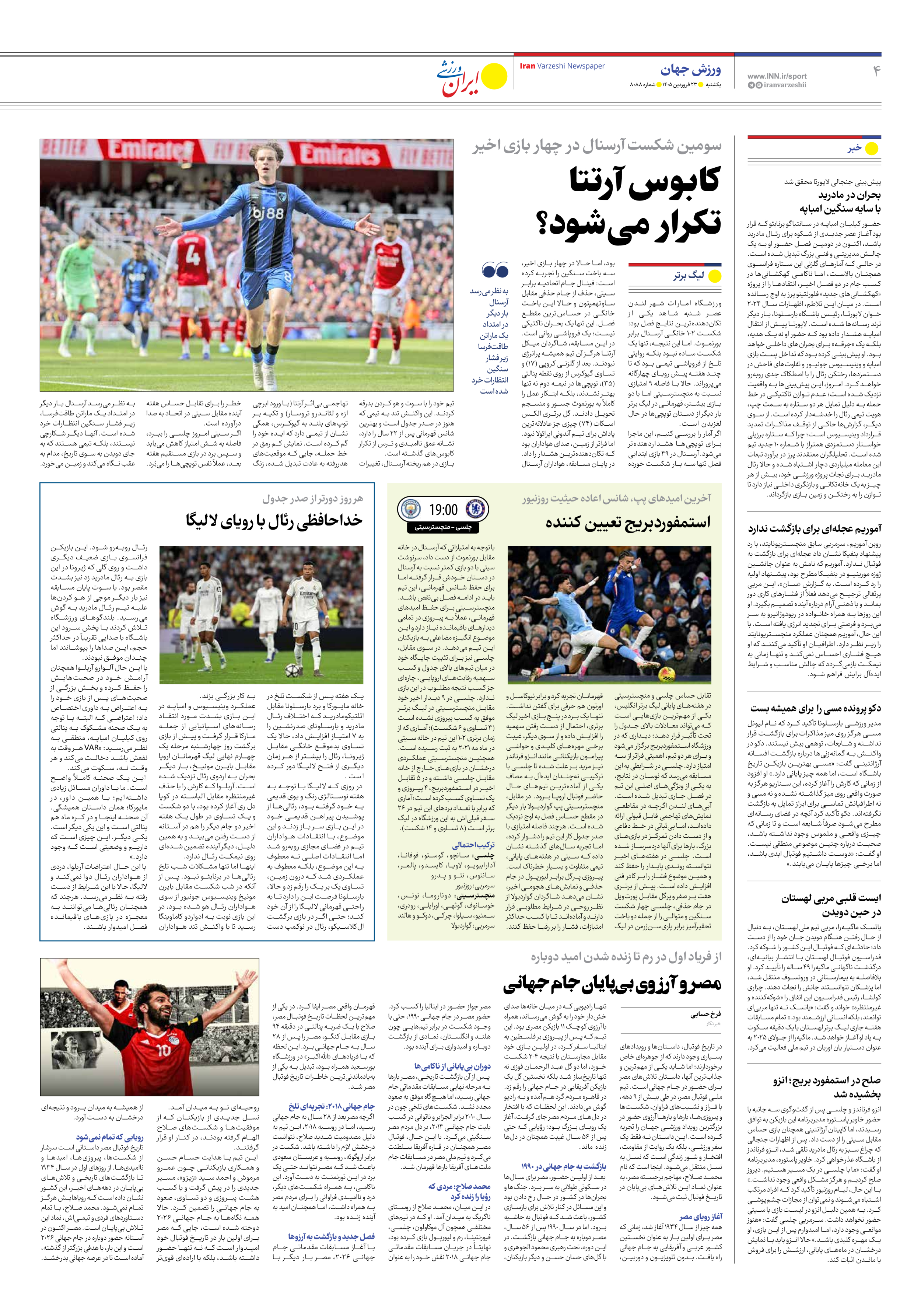 روزنامه ایران ورزشی - شماره هشت هزار و هشتاد و هشت - ۲۳ فروردین ۱۴۰۵ - صفحه ۴