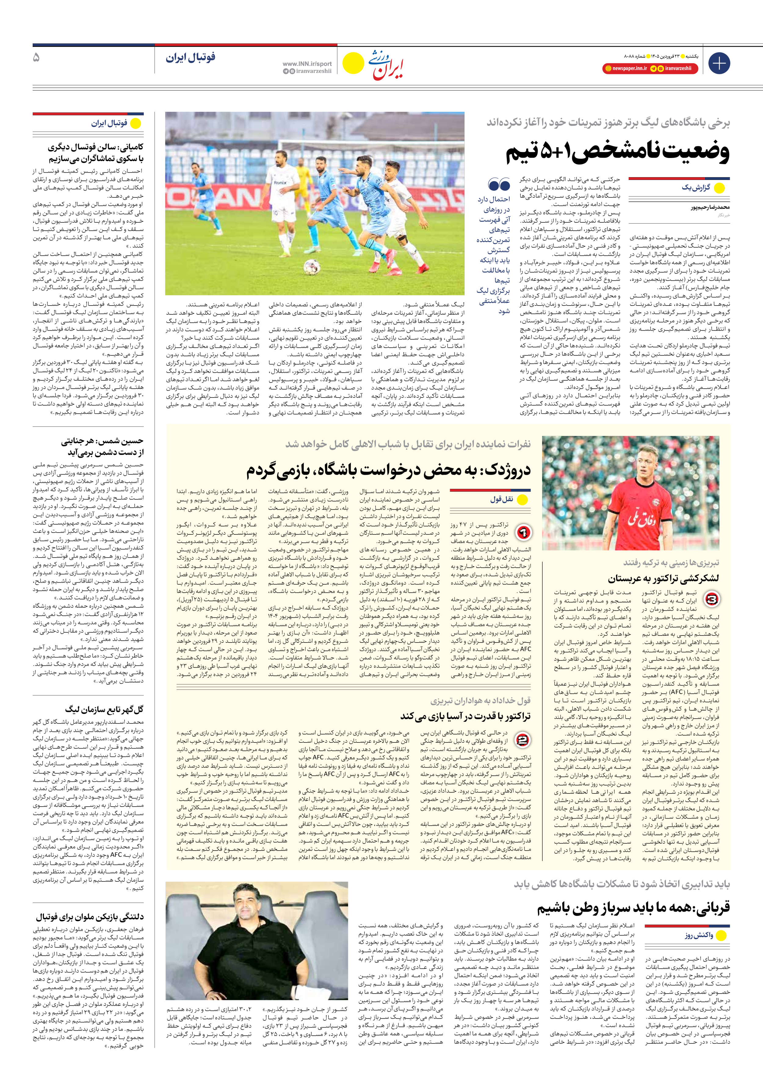 روزنامه ایران ورزشی - شماره هشت هزار و هشتاد و هشت - ۲۳ فروردین ۱۴۰۵ - صفحه ۵