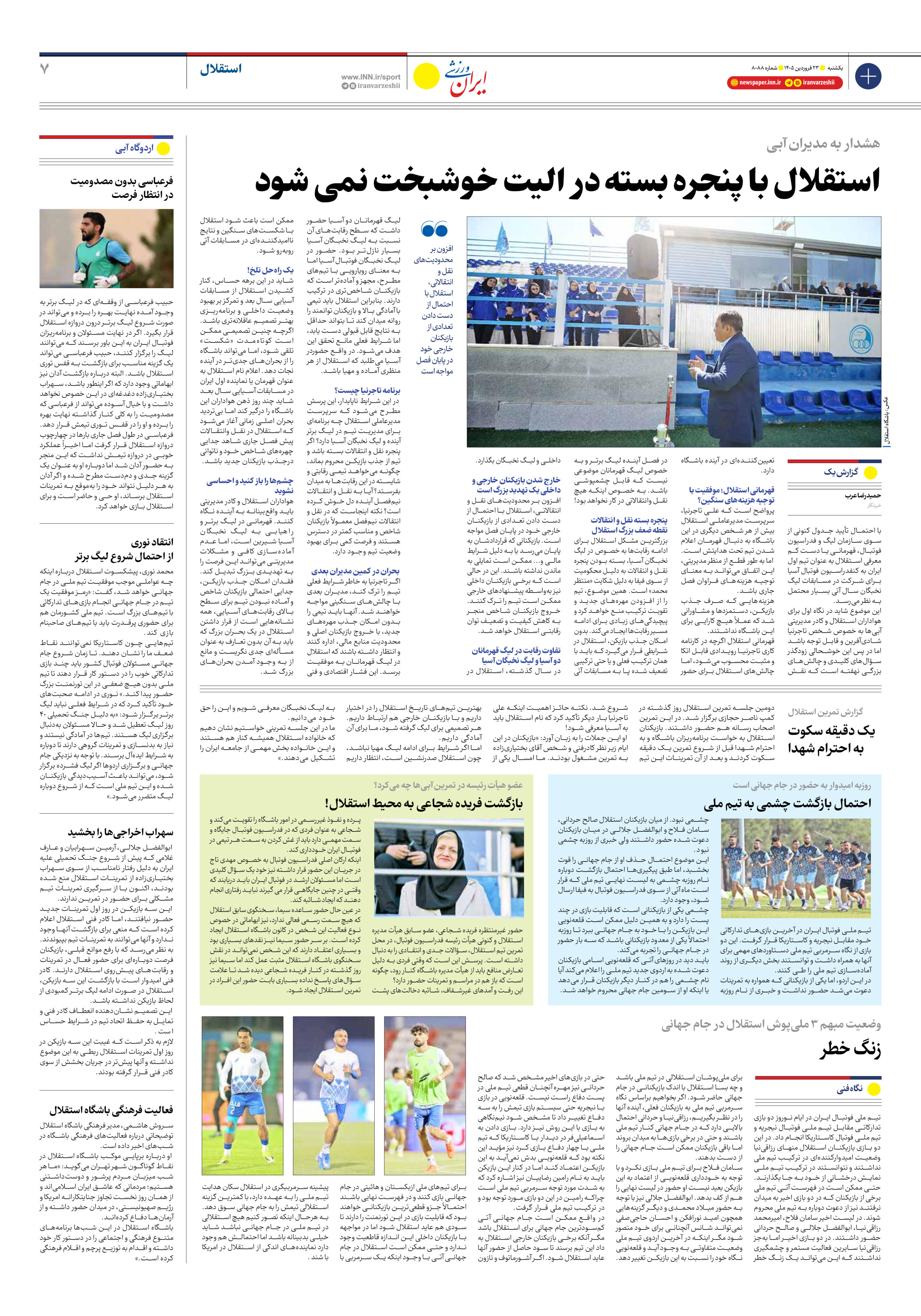 روزنامه ایران ورزشی - شماره هشت هزار و هشتاد و هشت - ۲۳ فروردین ۱۴۰۵ - صفحه ۷