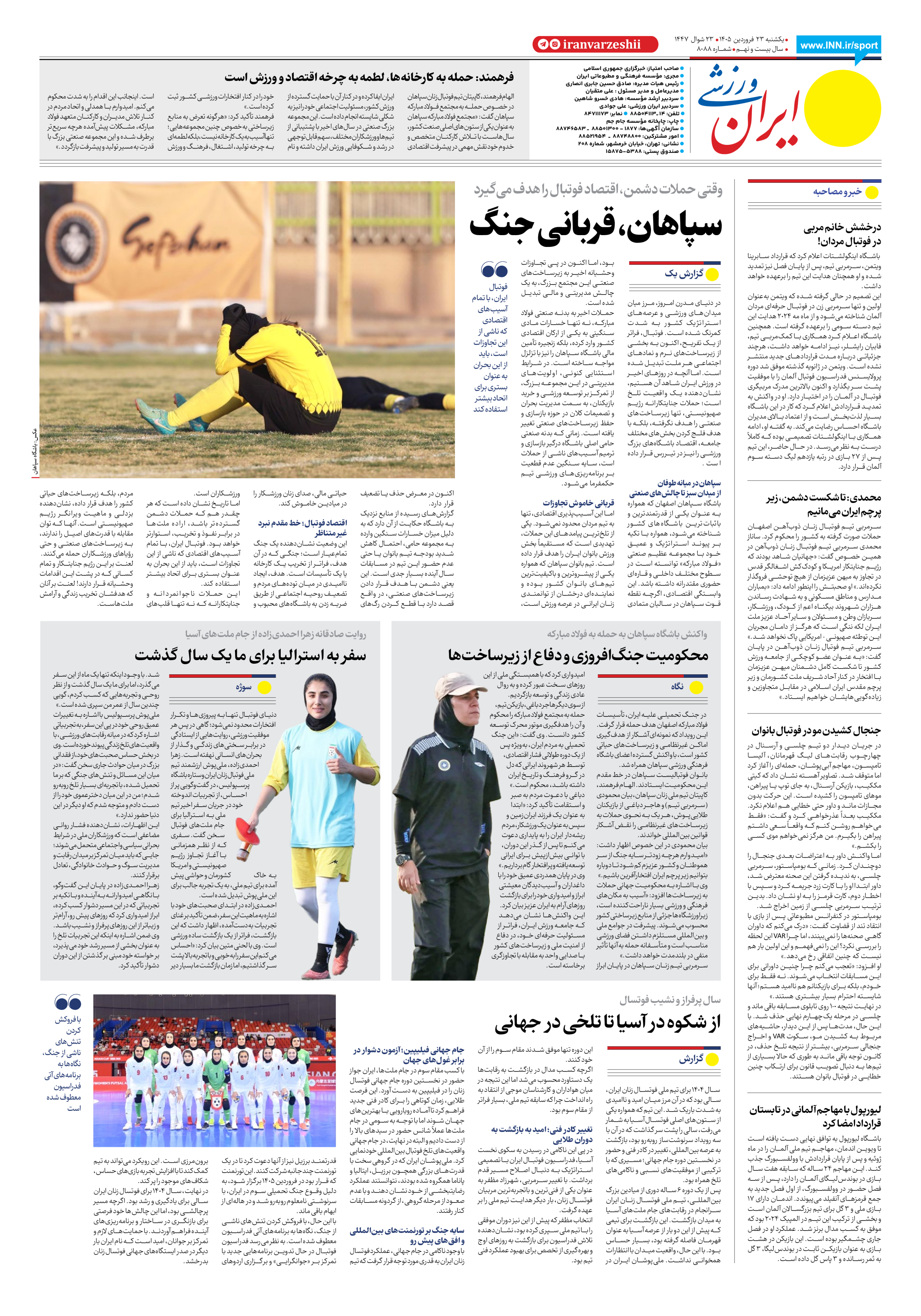 شماره هشت هزار و هشتاد و هشت - ۲۳ فروردین ۱۴۰۵