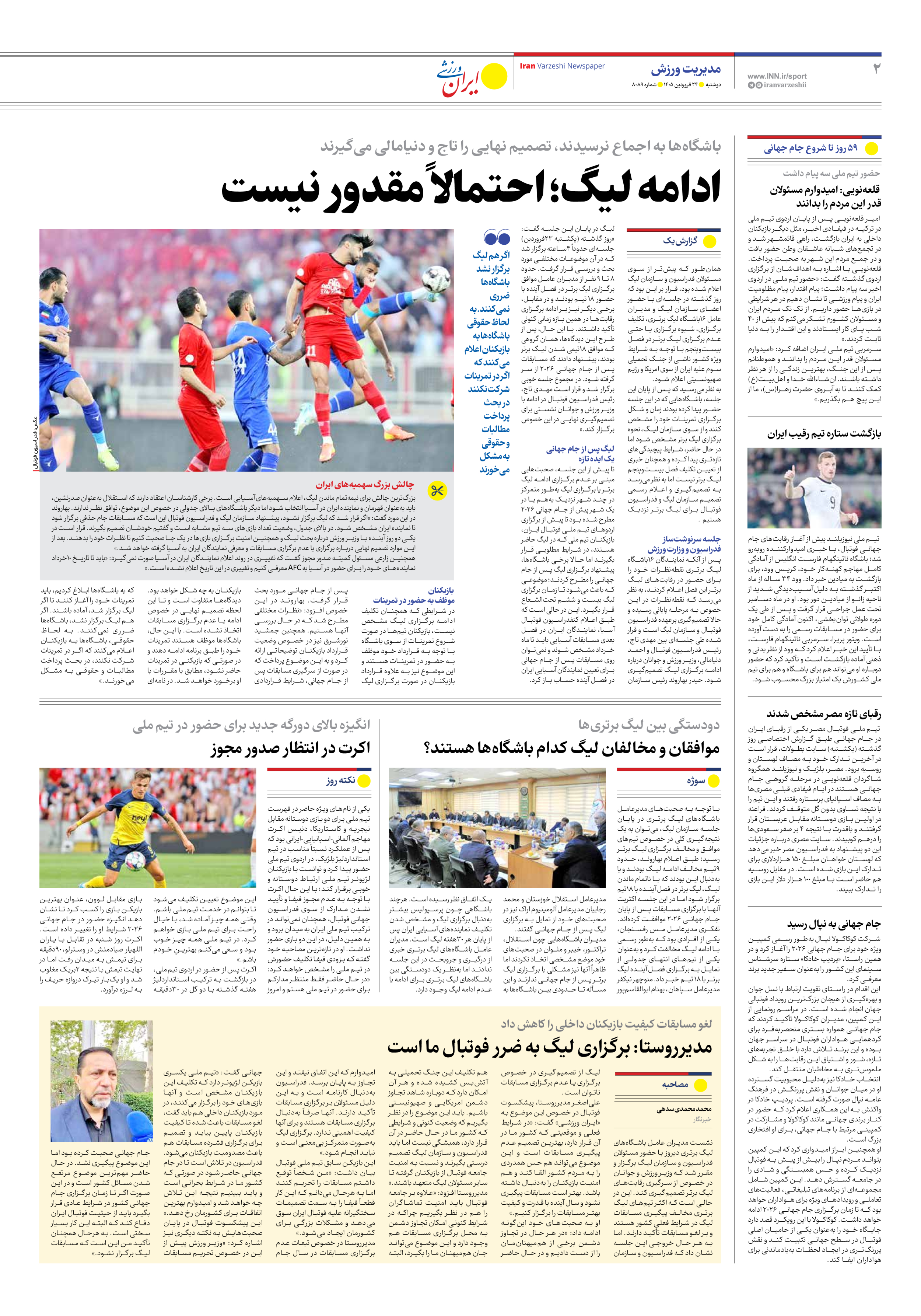 روزنامه ایران ورزشی - شماره هشت هزار و هشتاد و نه - ۲۴ فروردین ۱۴۰۵ - صفحه ۲